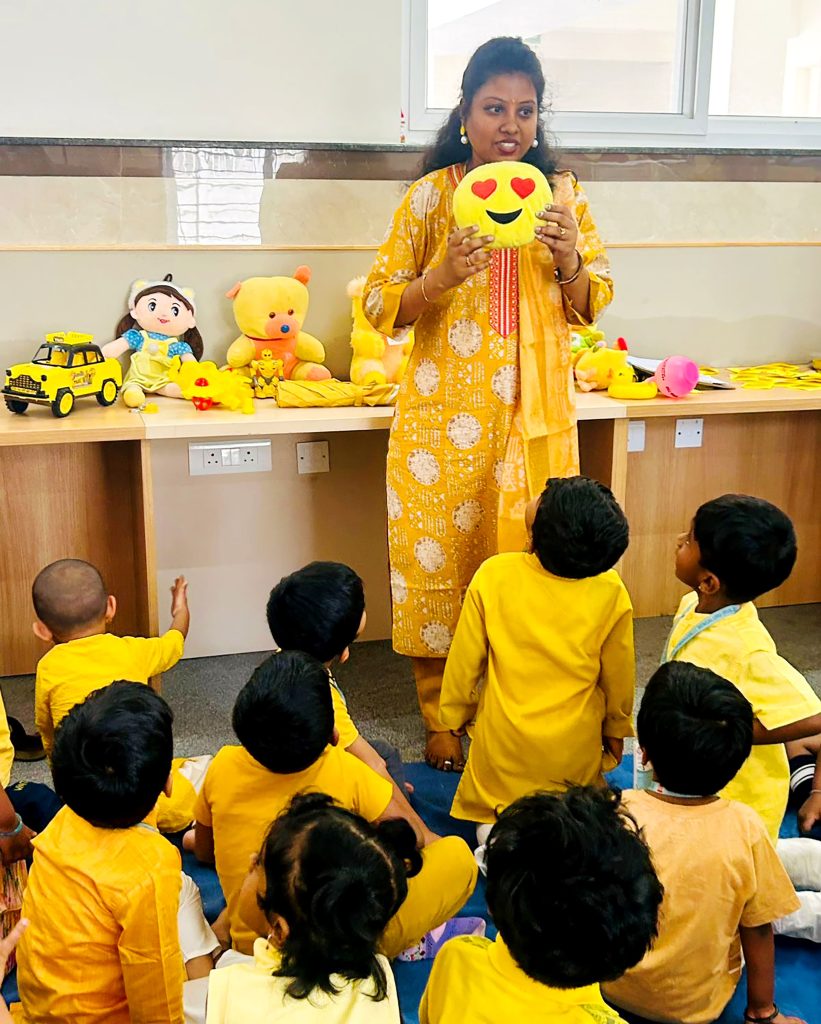 ಬೆಂಗಳೂರು, ಫೆ. 3: ರಾಷ್ಟ್ರೋತ್ಥಾನ ವಿದ್ಯಾಕೇಂದ್ರ – ಸೋಮನಹಳ್ಳಿಯಲ್ಲಿ ಹಳದಿ ದಿನಾಚರಣೆಯನ್ನು ಆಚರಿಸಲಾಯಿತು. ತರಗತಿಯ ಕೊಠಡಿಯೊಳಗೆ ಗುಂಪು ಚಟುವಟಿಕೆಯೊಂದಿಗೆ ಕಾರ್ಯಕ್ರಮವನ್ನು ಆರಂಭಿಸಲಾಯಿತು. ಹಳದಿ ದಿನದ ಮಹತ್ತ್ವವನ್ನು ವಿವರಿಸಲಾಯಿತು. ಮಕ್ಕಳು ಶ್ಲೋಕಗಳನ್ನು ಪಠಿಸಿದರು. ಹಾಗೂ ಸೂರ್ಯಕಾಂತಿ ಬೀಜ ಮೊಳಕೆ ಒಡೆಯುವುದರ ಕಿರುಚಿತ್ರವನ್ನು ಪ್ರದರ್ಶಿಸಲಾಯಿತು. ಹಸಿ ಅರಿಶಿನವನ್ನು ಉಜ್ಜುವುದು ಮತ್ತು ಜ್ಯಾಮಿತೀಯ ಆಕಾರಗಳನ್ನು ತಯಾರಿಸುವುದು ಮತ್ತು ಅರಿಶಿನವನ್ನು ಬಳಸಿಕೊಂಡು ಗಣೇಶ, ಗೌರಿ ಮತ್ತು ಇತರ ಸೃಜನಶೀಲ ವ್ಯಕ್ತಿಗಳನ್ನು ತಯಾರಿಸುವುದು ಮುಂತಾದ ವಿವಿಧ ಚಟುವಟಿಕೆಗಳನ್ನು ಪ್ರದರ್ಶಿಸಲಾಯಿತು. ಅತಿಥೇಯ ಪೂಜೆ ಮತ್ತು ಅರಿಶಿನವನ್ನು ಭಕ್ತಿಯಿಂದ ಪೂಜಿಸುವ ಮೂಲಕ, ಕಾರ್ಯಕ್ರಮವು ಮುಕ್ತಾಯಗೊಂಡಿತು.