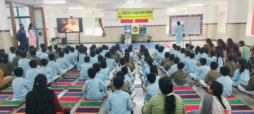 ಬೆಂಗಳೂರು, ಡಿ. 28: ರಾಷ್ಟ್ರೋತ್ಥಾನ ವಿದ್ಯಾಕೇಂದ್ರ – ಸೋಮನಹಳ್ಳಿ ಕನ್ನಡ ನಾಡಿನ ಹೆಮ್ಮೆಯ ಕವಿ, ನಾಟಕಕಾರ, ಜ್ಞಾನಪೀಠ ಪ್ರಶಸ್ತಿ ಪುರಸ್ಕೃತ ಹಾಗೂ ವಿಶ್ವಮಾನವ ಸಂದೇಶ ಸಾರಿದ ರಾಷ್ಟ್ರಕವಿ ಕುವೆಂಪುರವರ ಜನ್ಮದಿನದ ಪ್ರಯುಕ್ತವಾಗಿ ವಿಶ್ವ ಮಾನವ ದಿನಾಚರಣೆ ಕಾರ್ಯಕ್ರಮವನ್ನು ಹಮ್ಮಿಕೊಳ್ಳಲಾಗಿತ್ತು. ವಿದ್ಯಾರ್ಥಿ ದ್ಯುತಿ ಕವಿ ಕುವೆಂಪು ಅವರ ಬಗ್ಗೆ ಕವನವನ್ನು ರಚಿಸಿ ಪ್ರಸ್ತುತಪಡಿಸಿದಳು. ವಿದ್ಯಾರ್ಥಿ ಮಿಥುನ್ ಕವಿ ಕುವೆಂಪುರವರ ಛದ್ಮವೇಷವನ್ನು ಧರಿಸಿ ವಿಶ್ವಮಾನವ ಸಂದೇಶವನ್ನು ತಿಳಿಸಿ ಕವಿ ಕುವೆಂಪುರವರ ಜೀವನ ಚರಿತ್ರೆಯ ಬಗ್ಗೆ ಮನವರಿಕೆ ಮಾಡಿಕೊಟ್ಟನು. ನಂತರ ವಿಶ್ವಮಾನವ ದಿನಾಚರಣೆಯ ಪ್ರಯುಕ್ತವಾಗಿ ಕು. ಜತಿನ್ ರಾಷ್ಟ್ರಕವಿ ಕುವೆಂಪುರವರ ಭಾವಚಿತ್ರವನ್ನು ಬಿಡಿಸಿ ಮಕ್ಕಳಲ್ಲಿ ಕವಿ ಕುವೆಂಪುರವರ ಬಗ್ಗೆ ಮತ್ತಷ್ಟು ಜಾಗೃತಿಯನ್ನು ಮೂಡಿಸಿದನು. ಕೊನೆಯದಾಗಿ ರಾಷ್ಟ್ರಕವಿಯವರನ್ನು ಕುರಿತು ಮತ್ತಷ್ಟು ಮಾಹಿತಿಯನ್ನು ದೃಶ್ಯ ಪ್ರದರ್ಶನವನ್ನು ತೋರಿಸಲಾಯಿತು.