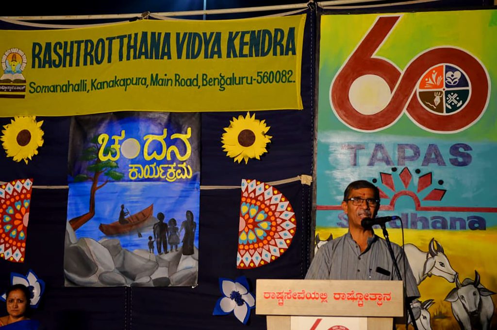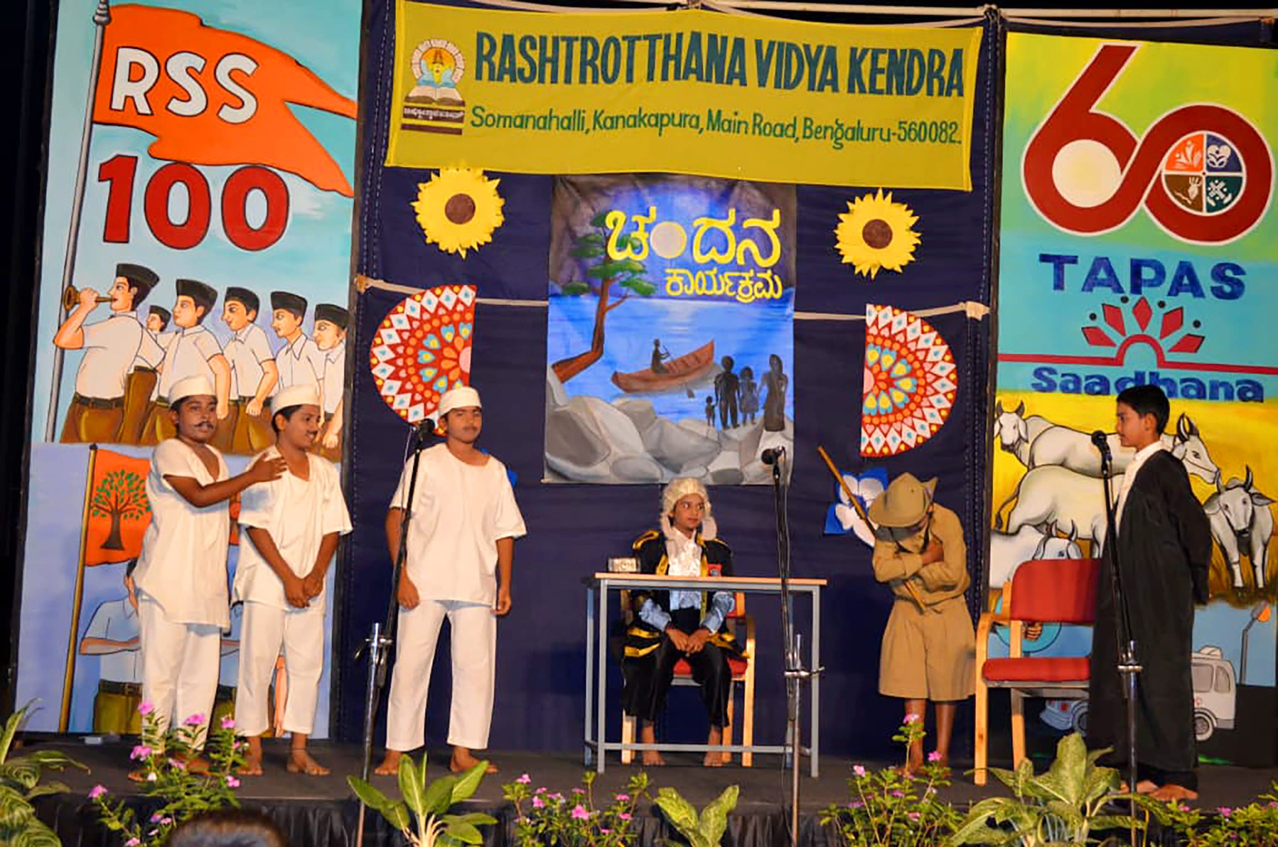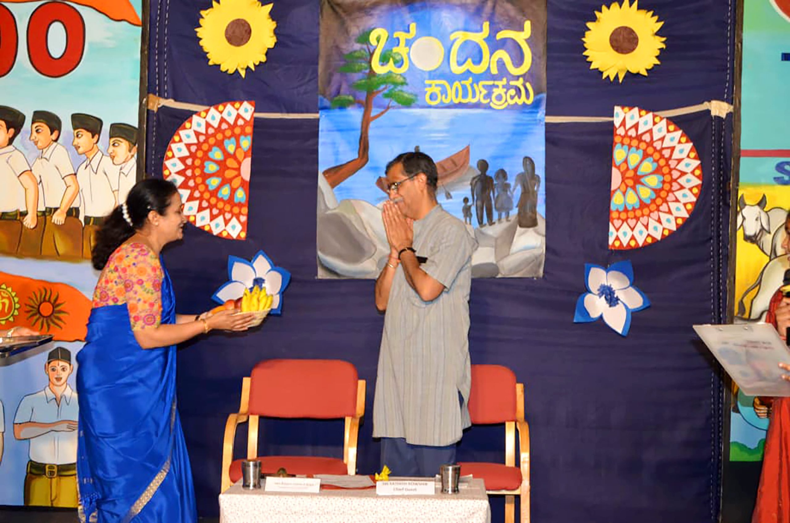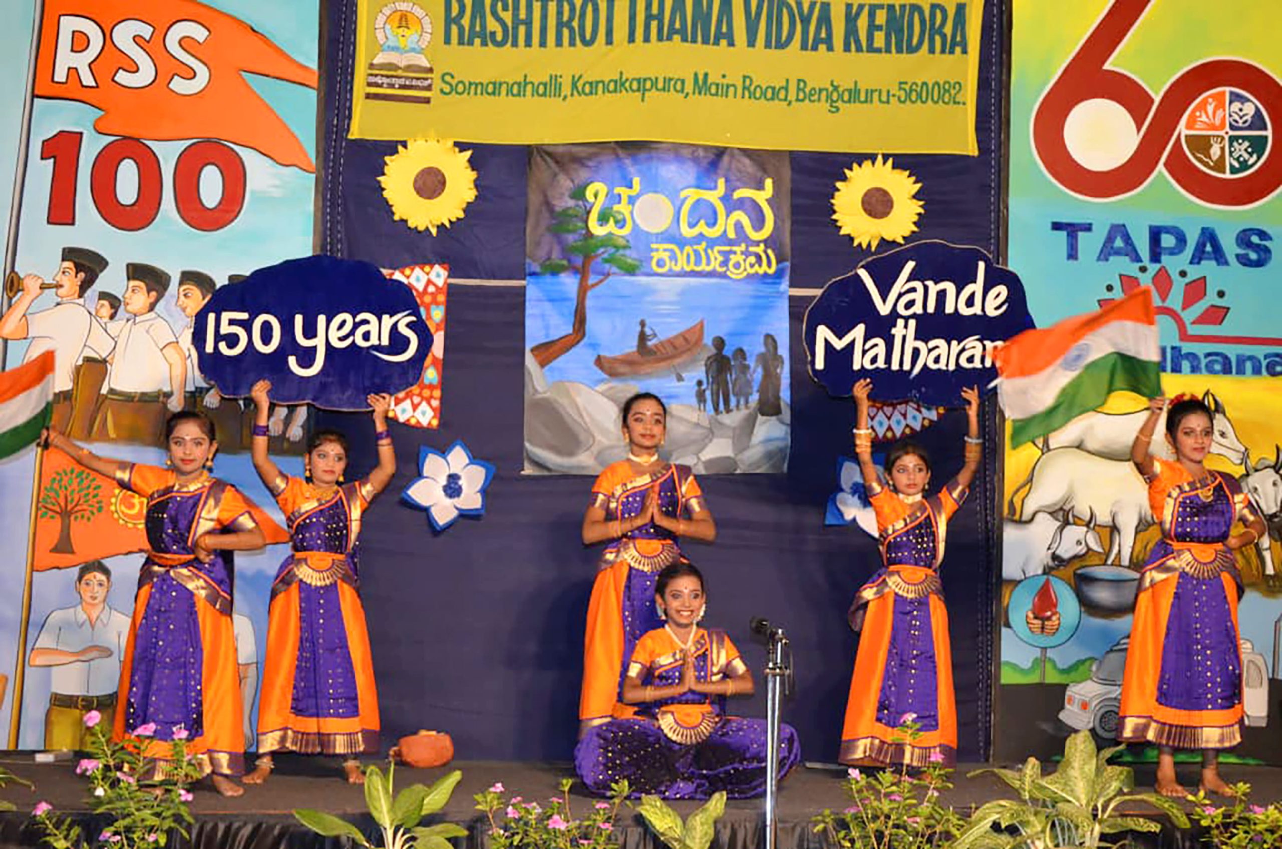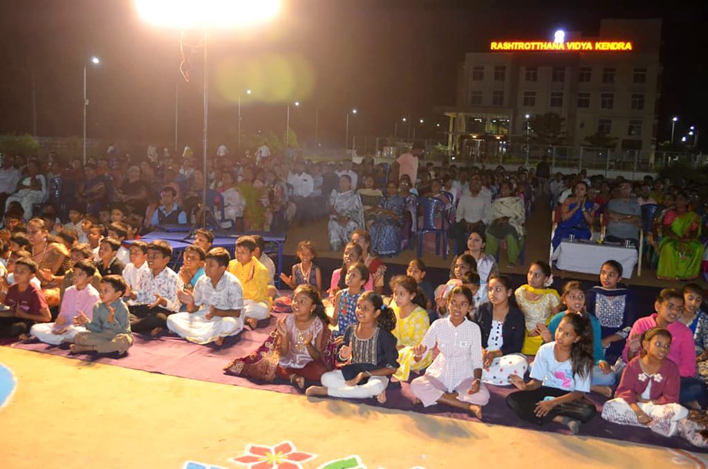 Bengaluru, Mar. 7: A Chandana program was organized herein Rashtrotthana Vidya Kendra – Somanahalli, And students, teachers and family members participated. Speaking at the program, Prabhodan Prant Toli member Sri Satish said, “To instil good morals in children, there should be a moral atmosphere at home as well as at school. The role of parents in the development of children is very important.” Everyone enjoyed the moonlit meal together. Shakha games were organized, and children and elders participated enthusiastically. Cultural programs were held by the students. The play ‘Balidana’ was performed by the children. The students performed a tribute dance on the occasion of the completion of 150 years of ‘Vande Mataram’.