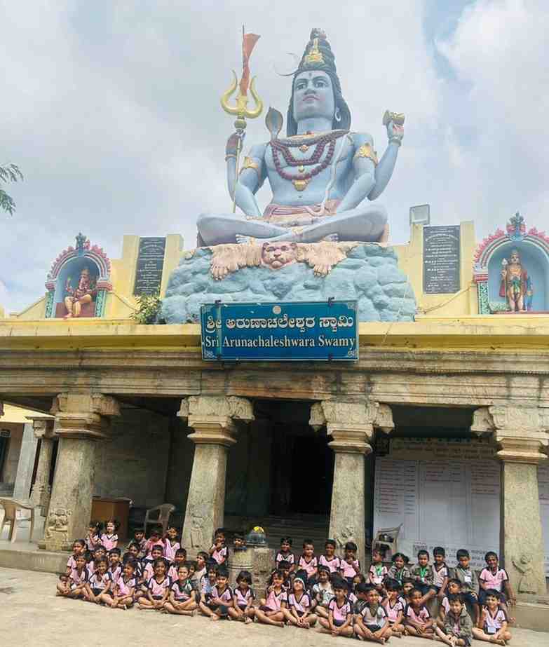 Bengaluru, June 27: Children from Rashtrotthana Vidya Kendra – Somanahalli Gokulam went on a field trip to the Harohalli Sri Arunachaleswara Swamy Temple in Karnataka.