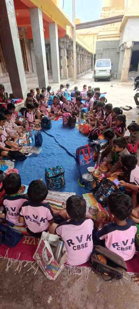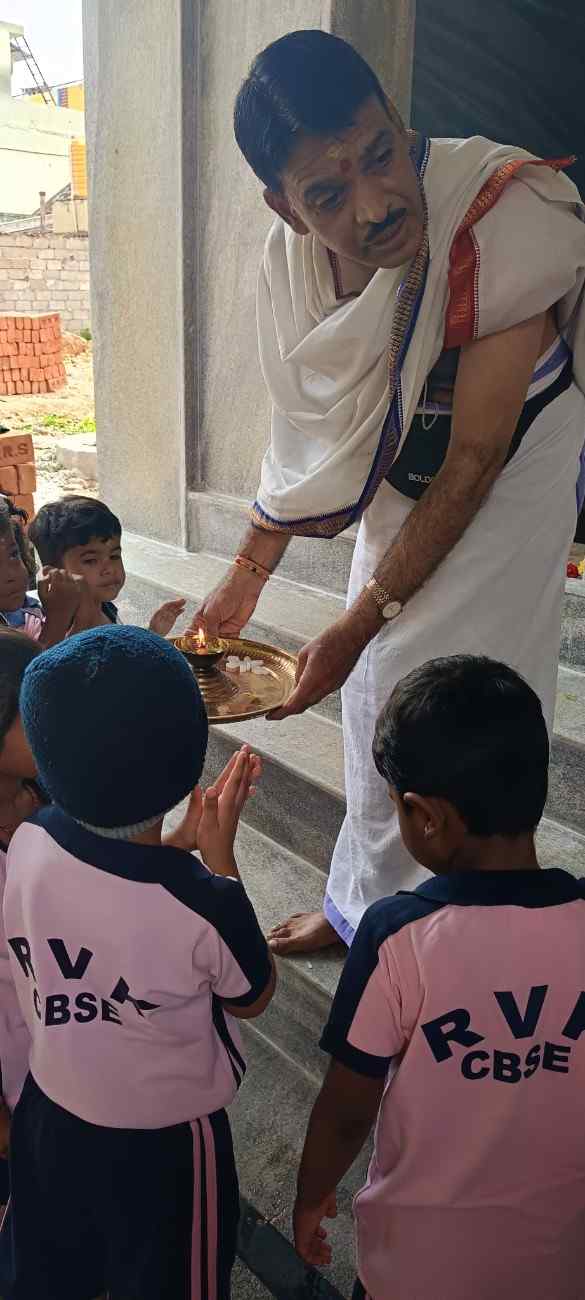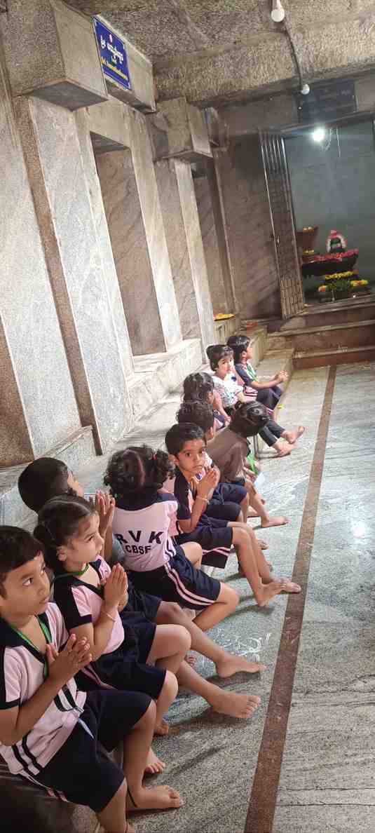 ದೇವಾಲಯದ ಅರ್ಚಕರು ಎಲ್ಲಾ ಮಕ್ಕಳಿಗೆ ಆಶೀರ್ವದಿಸಿ, ಶಾಲೆಯ ಆರ್‌ವಿಕೆಎಸ್ ಹೆಸರಿನಲ್ಲಿ ವಿಶೇಷ ಅರ್ಚನೆಯನ್ನು ಮಾಡಿದರು. ವಿದ್ಯಾರ್ಥಿಗಳು ಅರ್ಚಕರಿಂದ ಪ್ರಸಾದವನ್ನು ಪಡೆದರು.