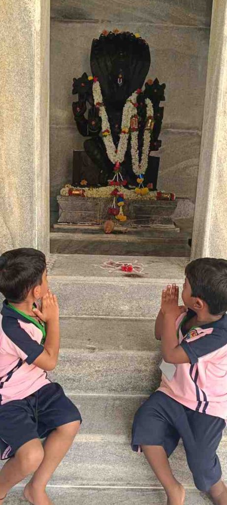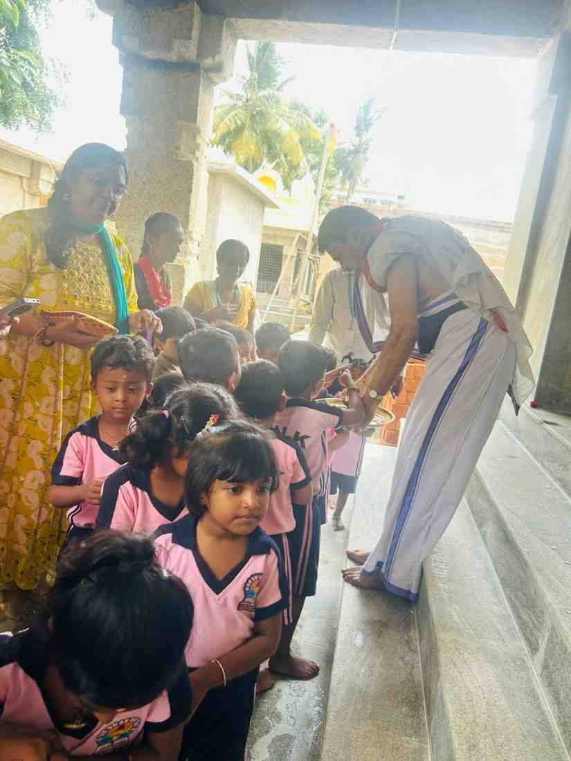 The temple priest blessed all the children and performed a special Archana in the name of the school’s RVK -Somanahalli. The students received prasad from the priest.