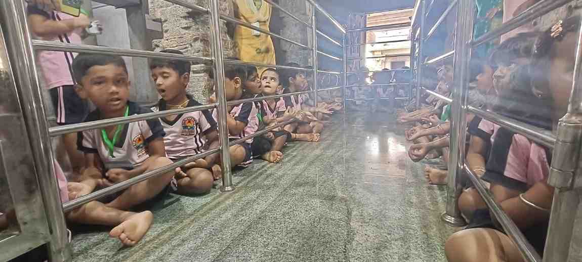 ಮಕ್ಕಳು ದೇವಾಲಯದ ಆವರಣವನ್ನು ಪ್ರವೇಶಿಸುತ್ತಿದ್ದಂತೆ, ಭಜನೆಗಳನ್ನು ಹಾಡಿ, ಶ್ಲೋಕಗಳನ್ನು ಪಠಿಸಿ “ಓಂ ನಮಃ ಶಿವಾಯ” ಎಂದು 108 ಬಾರಿ ಪಠಿಸಿದರು.