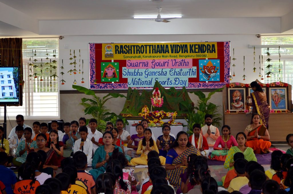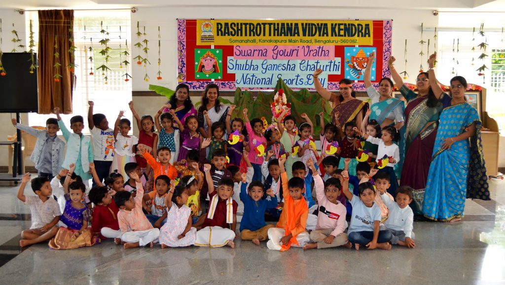 ಬೆಂಗಳೂರು, ಆ. 27-29: ರಾಷ್ಟ್ರೋತ್ಥಾನ ವಿದ್ಯಾಕೇಂದ್ರ – ಸೋಮನಹಳ್ಳಿಯಲ್ಲಿ ಗಣೇಶೋತ್ಸವವನ್ನು ಆಚರಿಸಲಾಯಿತು. ಮೊದಲನೆಯ ದಿನ ಗಣಪತಿಯನ್ನು ಶಾಲೆಯ ಪ್ರಾರ್ಥನಾ ಮಂದಿರದಲ್ಲಿ ಪ್ರತಿಷ್ಠಾಪನೆ ಮಾಡಿ ಶಾಸ್ತ್ರ ಬದ್ಧವಾಗಿ ಪೂಜೆಯನ್ನು ನೆರವೇರಿಸಲಾಯಿತು. ಭಕ್ತಿ ಗೀತೆ ಮತ್ತು ಗಣಪತಿಯ ಕುರಿತು ನಾಟ್ಯಪ್ರದರ್ಶನಗಳನ್ನೂ ಮಾಡಲಾಯಿತು. ಎರಡನೇ ದಿನವೂ ಗಣಪತಿಗೆ ಪುಷ್ಪಾರ್ಚನೆಯನ್ನು ಮಾಡಿ ಮಂತ್ರ ಪಠಿಸಲಾಯಿತು. ಗಣಪತಿ ಚತುರ್ಥಿಯ ಮಹತ್ವವನ್ನು ಪಿಪಿಟಿಯಲ್ಲಿ ತೋರಿಸಲಾಯಿತು. ಮೂರನೆಯ ದಿನ ಗಣೇಶ ವಿಸರ್ಜನೆಯ ಸಂದರ್ಭದಲ್ಲಿ, RP@60 ರ ಧ್ಯೇಯವಾಕ್ಯದ ಪ್ರಕಾರ, ಎಲ್ಲಾ ಬೋಧಕೇತರ ಸಿಬ್ಬಂದಿಗಾಗಿ “ಕುಟುಂಬ ಸಹಭೋಜನ”ವನ್ನು ಆಯೋಜಿಸಲಾಗಿತ್ತು. ಎಲ್ಲರೂ ಒಟ್ಟಿಗೆ ಹಬ್ಬದ ಉತ್ಸಾಹವನ್ನು ಆನಂದಿಸಲು ಸಾಧ್ಯವಾಗುವಂತೆ ವಿಶೇಷ ಊಟವನ್ನು ಏರ್ಪಡಿಸಲಾಗಿತ್ತು. ಗಣಪನ ವಿಸರ್ಜನೆ ಯಥಾ ಪ್ರಕಾರ ಗಣಪತಿಗೆ ಪುಷ್ಪಾರ್ಚನೆ, ಭಕ್ತಿ ಪೂರ್ವಕವಾದ ಪೂಜೆಯನ್ನು ಮಾಡಲಾಯಿತು. ಶಾಲೆಯ ಶಿಕ್ಷಕರು ಗಣಪತಿಯ ವಿಸರ್ಜನೆಯ ಮಹತ್ವವನ್ನು ತಿಳಿಸಿದರು. ಮಕ್ಕಳು ಗಣಪತಿಗೆ ನಾಟ್ಯ, ನಾಟಕ, ಭಜನೆ, ಮತ್ತು ಜಯ ಘೋಷಣೆಗಳನ್ನು ಕೂಗುತ್ತಾ, ಮಂತ್ರ ಪಠಣೆಗಳ ಸೇವೆ ಸಲ್ಲಿಸಿ, ಶಾಲಾ ಆವರಣದಲ್ಲಿ ಹಾಗೂ ತರಗತಿಗಳ ಮುಂದೆ ಗಣಪತಿಯ ಉತ್ಸವವನ್ನು ಮಾಡಿದರು.