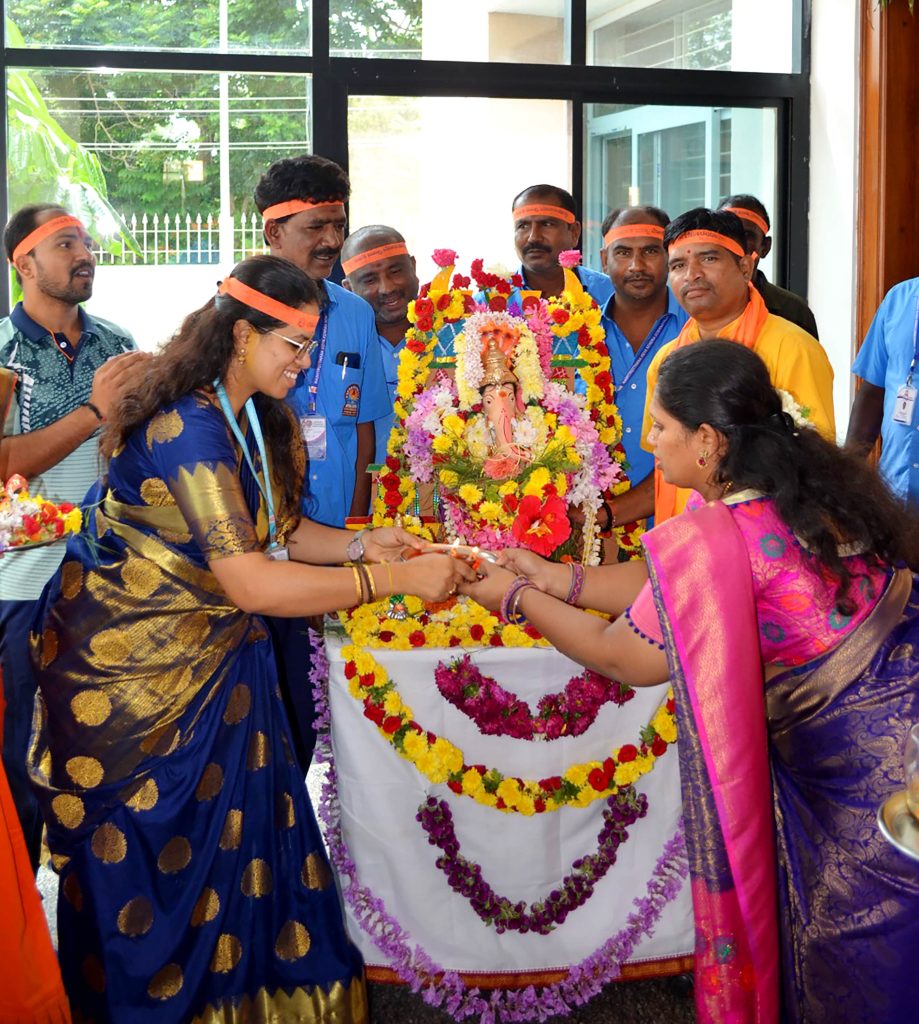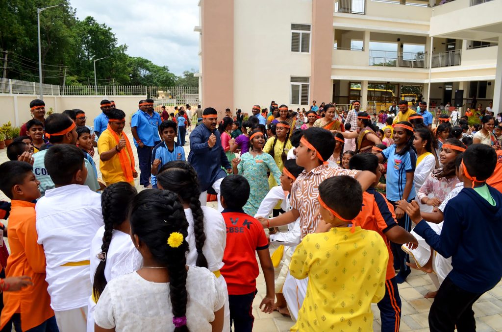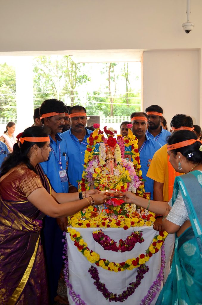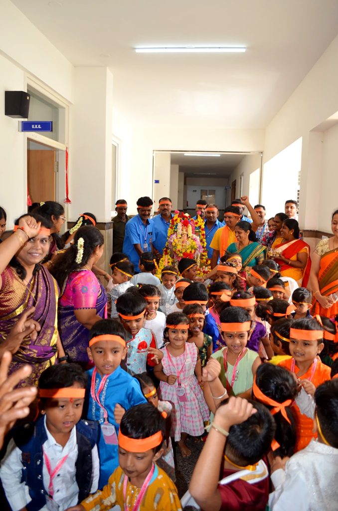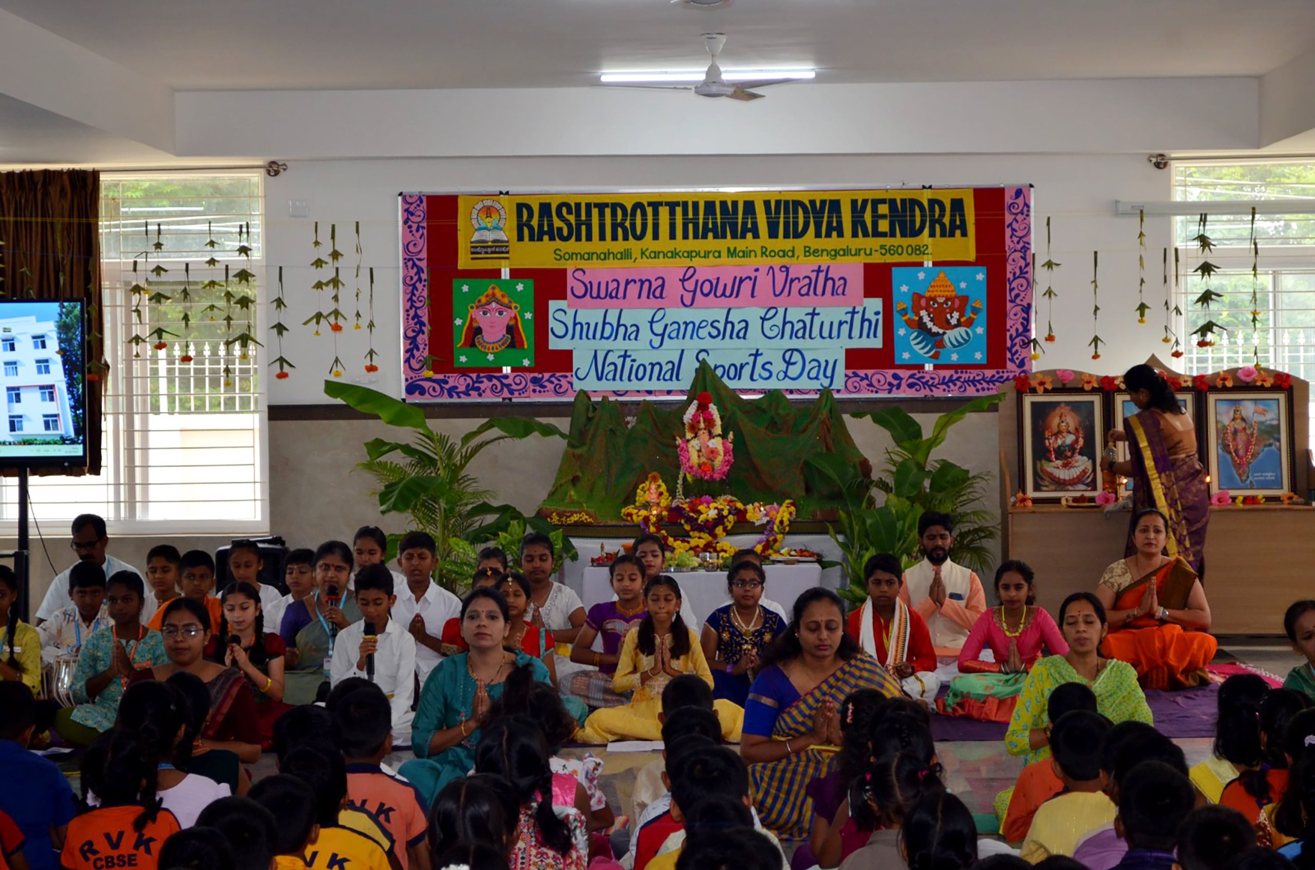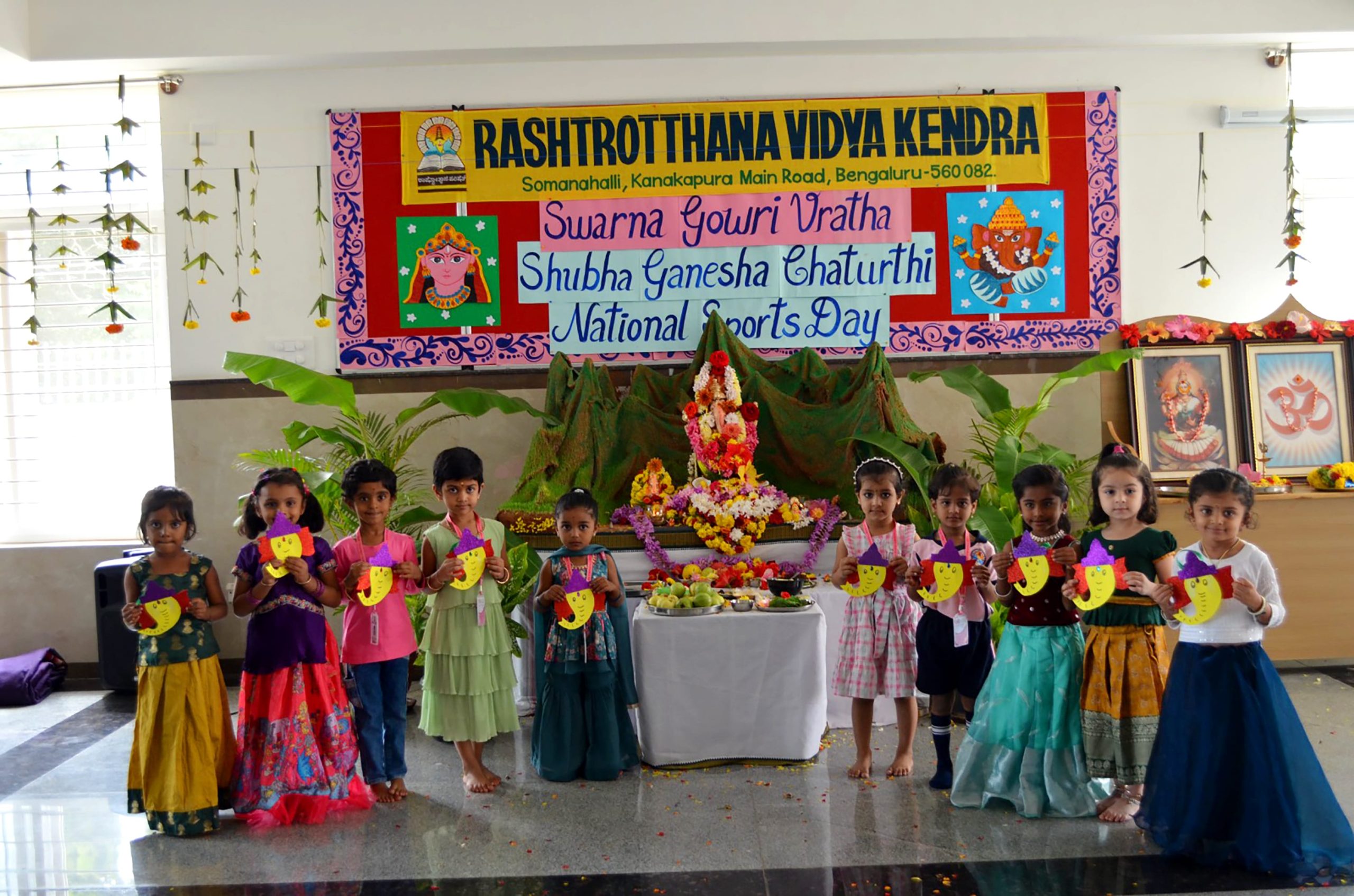Bengaluru, Aug. 27-29: Ganesha Chatuthri was celebrated herein Rashtrotthana Vidya Kendra – Somanahalli. On the first day, Lord Ganesha was installed in the school chapel and worship was performed according to the scriptures. Devotional songs and dance performances were also performed on Lord Ganesha. On the second day, Lord Ganesha was offered flowers and mantras were chanted. The importance of Lord Ganesha Chaturthi was shown in a PPT. On the third day, during the Ganesh Visarjan, as per the motto of RP@60, a “Family Sahabhojan” was organized for all the non-teaching staff. A special meal was arranged so that everyone could enjoy the festive spirit together. As per the Ganesha Visarjan, Lord Ganesha was offered flowers and worshiped in a devotional manner. The school teachers explained the importance of Lord Ganesha Visarjan. The children performed dances, plays, bhajans, and chanted victory slogans to Lord Ganesha, and performed mantra chants, celebrating the festival of Ganesha in the school premises and in front of the classrooms.