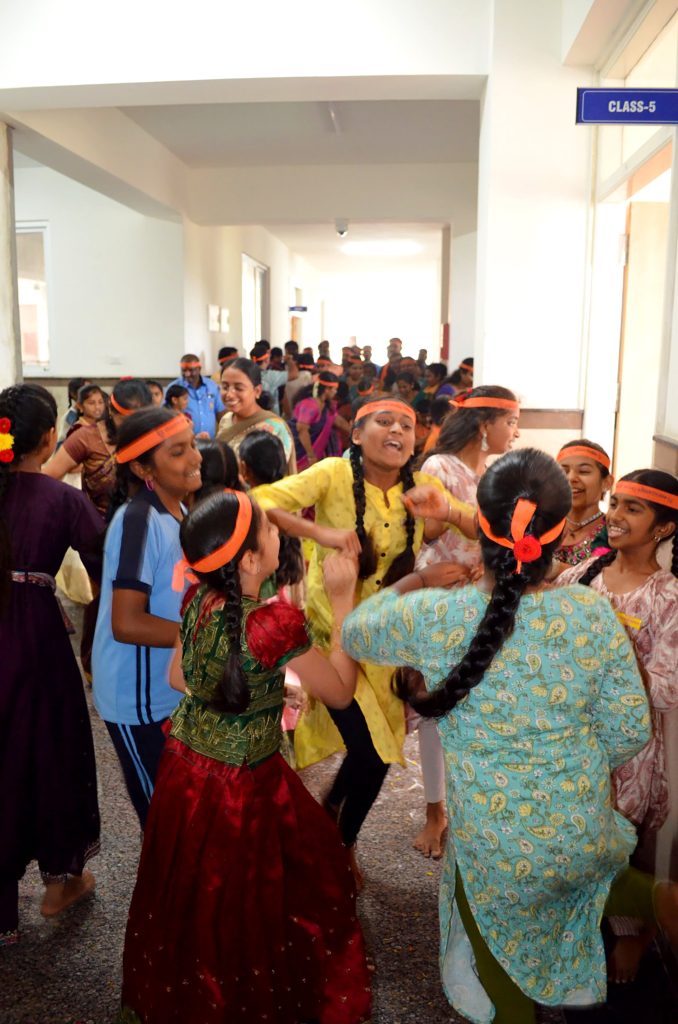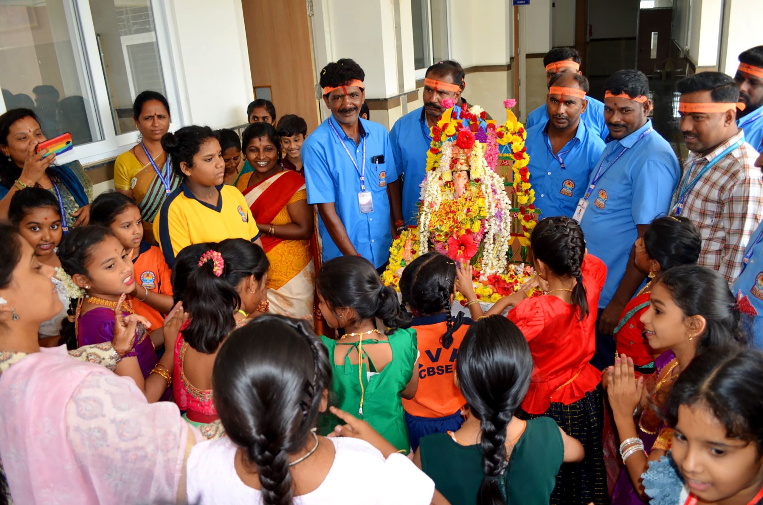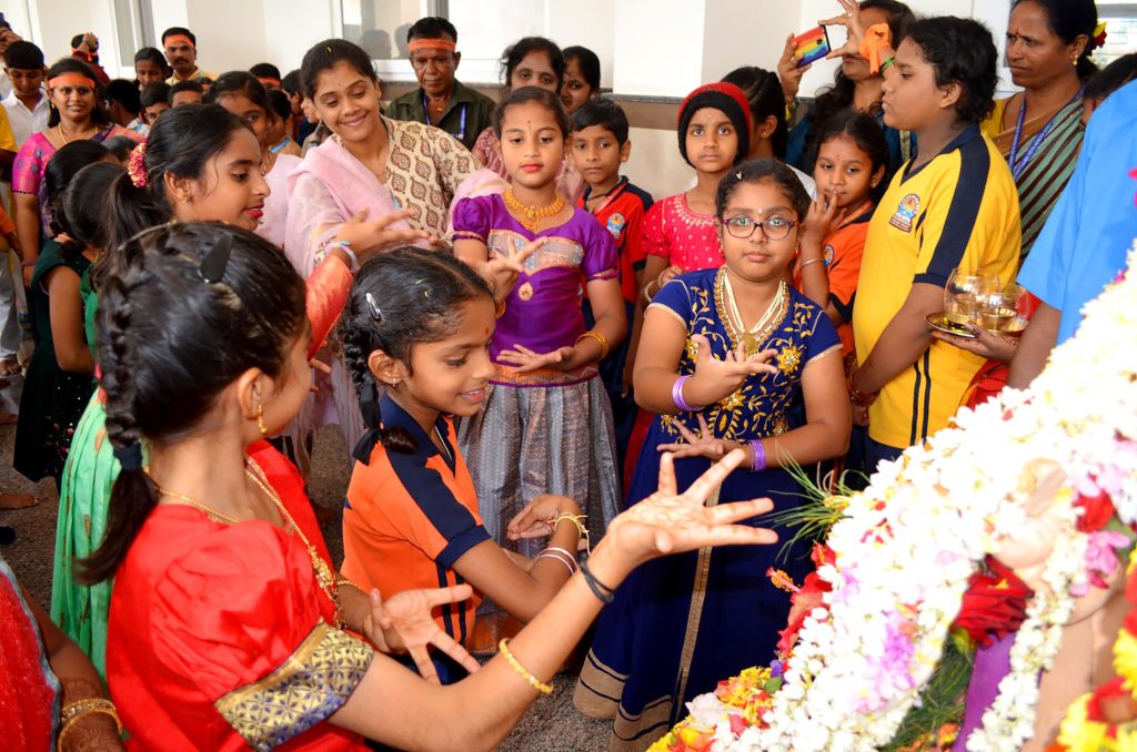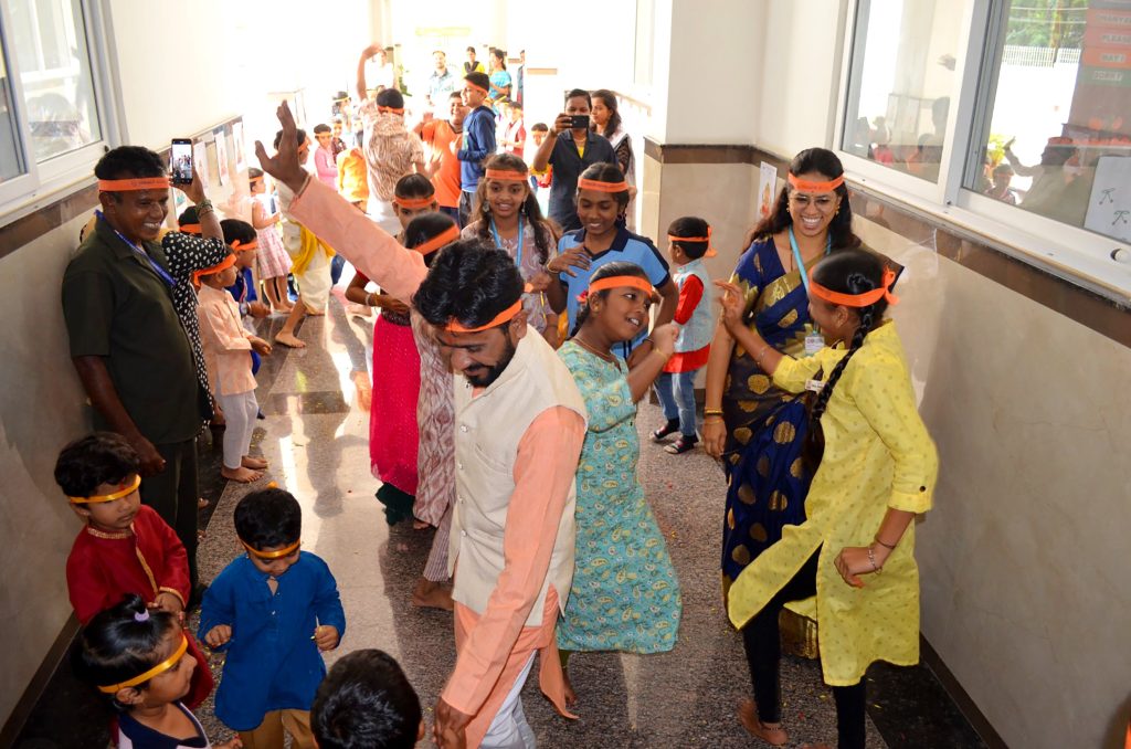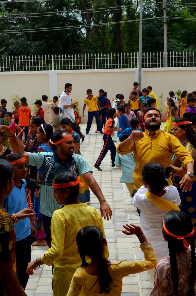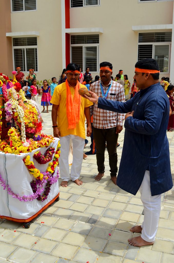 Bengaluru, Aug. 27-29: Ganesha Chatuthri was celebrated herein Rashtrotthana Vidya Kendra – Somanahalli. On the first day, Lord Ganesha was installed in the school chapel and worship was performed according to the scriptures. Devotional songs and dance performances were also performed on Lord Ganesha. On the second day, Lord Ganesha was offered flowers and mantras were chanted. The importance of Lord Ganesha Chaturthi was shown in a PPT. On the third day, during the Ganesh Visarjan, as per the motto of RP@60, a “Family Sahabhojan” was organized for all the non-teaching staff. A special meal was arranged so that everyone could enjoy the festive spirit together. As per the Ganesha Visarjan, Lord Ganesha was offered flowers and worshiped in a devotional manner. The school teachers explained the importance of Lord Ganesha Visarjan. The children performed dances, plays, bhajans, and chanted victory slogans to Lord Ganesha, and performed mantra chants, celebrating the festival of Ganesha in the school premises and in front of the classrooms.