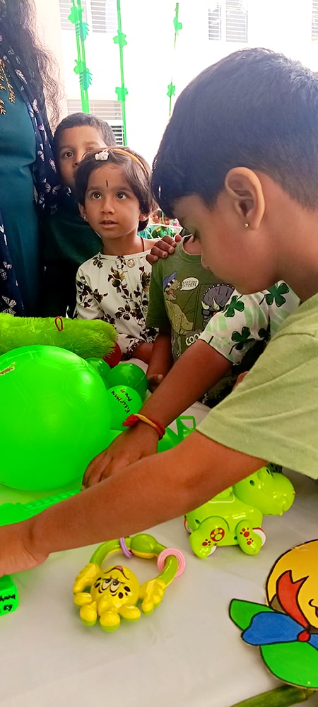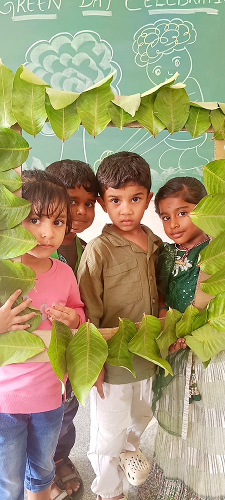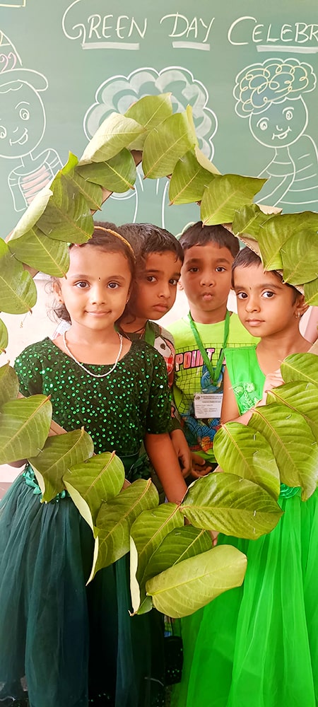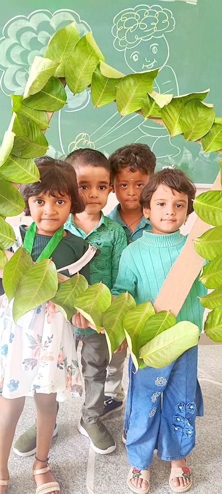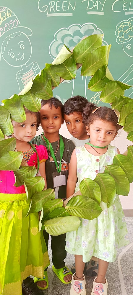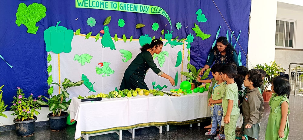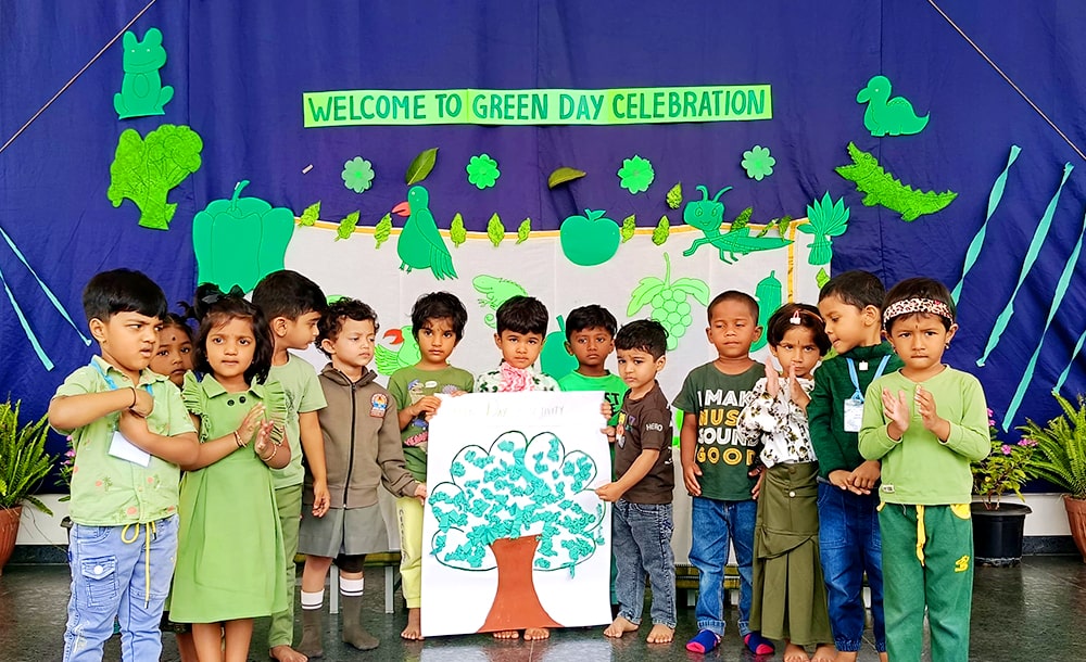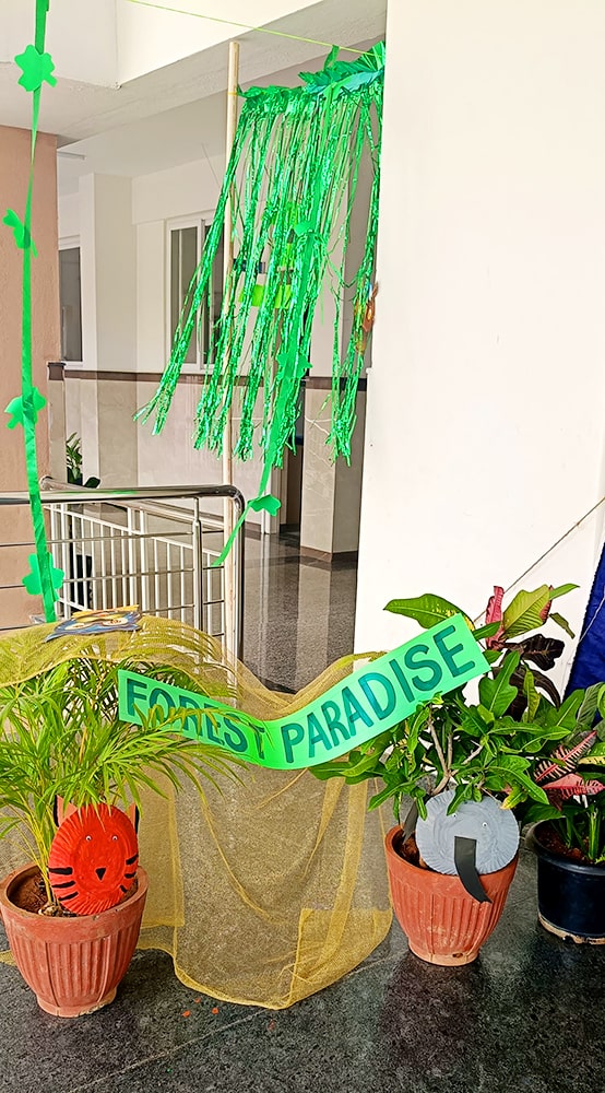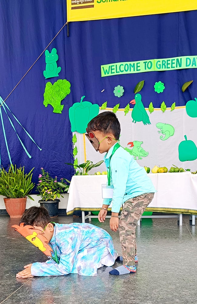 ಪ್ರೀ-ಕೆಜಿಯ ಮಕ್ಕಳು ಶ್ಲೋಕ ವಾಚನ ಮಾಡಿದರು. ಮಕ್ಕಳು ಸಿಂಹ ಮತ್ತು ಇಲಿಯ ಮೇಳಿನ ಮೋಜಿನ ಕಿರುನಾಟಕವನ್ನು ಪ್ರದರ್ಶಿಸಿದರು.ಮಕ್ಕಳು ನೃತ್ಯವನ್ನು ಪ್ರದರ್ಶಿಸಿದರು. ತಮ್ಮ ಸುತ್ತಮುತ್ತಲಿನ ಪ್ರಕೃತಿಯನ್ನು ತಿಳಿದುಕೊಳ್ಳುವ ಪ್ರಯತ್ನವನ್ನು ಮಾಡಿದರು. ನಮ್ಮಆರೋಗ್ಯವನ್ನು ಕಾಪಾಡುವಲ್ಲಿ ಮರಗಿಡಗಳ, ಹಸಿರು ತರಕಾರಿಗಳ, ಹಣ್ಣುಗಳ ಪ್ರಾಮುಖ್ಯತೆಯನ್ನು ಶೋಧಿಸಿದರು. ಬಗೆಬಗೆಯ ಹಸಿರು ತರಕಾರಿಗಳನ್ನು ಹಣ್ಣುಗಳನ್ನು ಗುರುತಿಸುವುದು ಮತ್ತು ಅವುಗಳ ಪೌಷ್ಠಿಕ ಮೌಲ್ಯಗಳನ್ನು ತಿಳಿದುಕೊಳ್ಳುವುದು ಮೊದಲಾದ ಚಟುವಟಿಕೆಗಳನ್ನು ನಡೆಸಲಾಯಿತು.