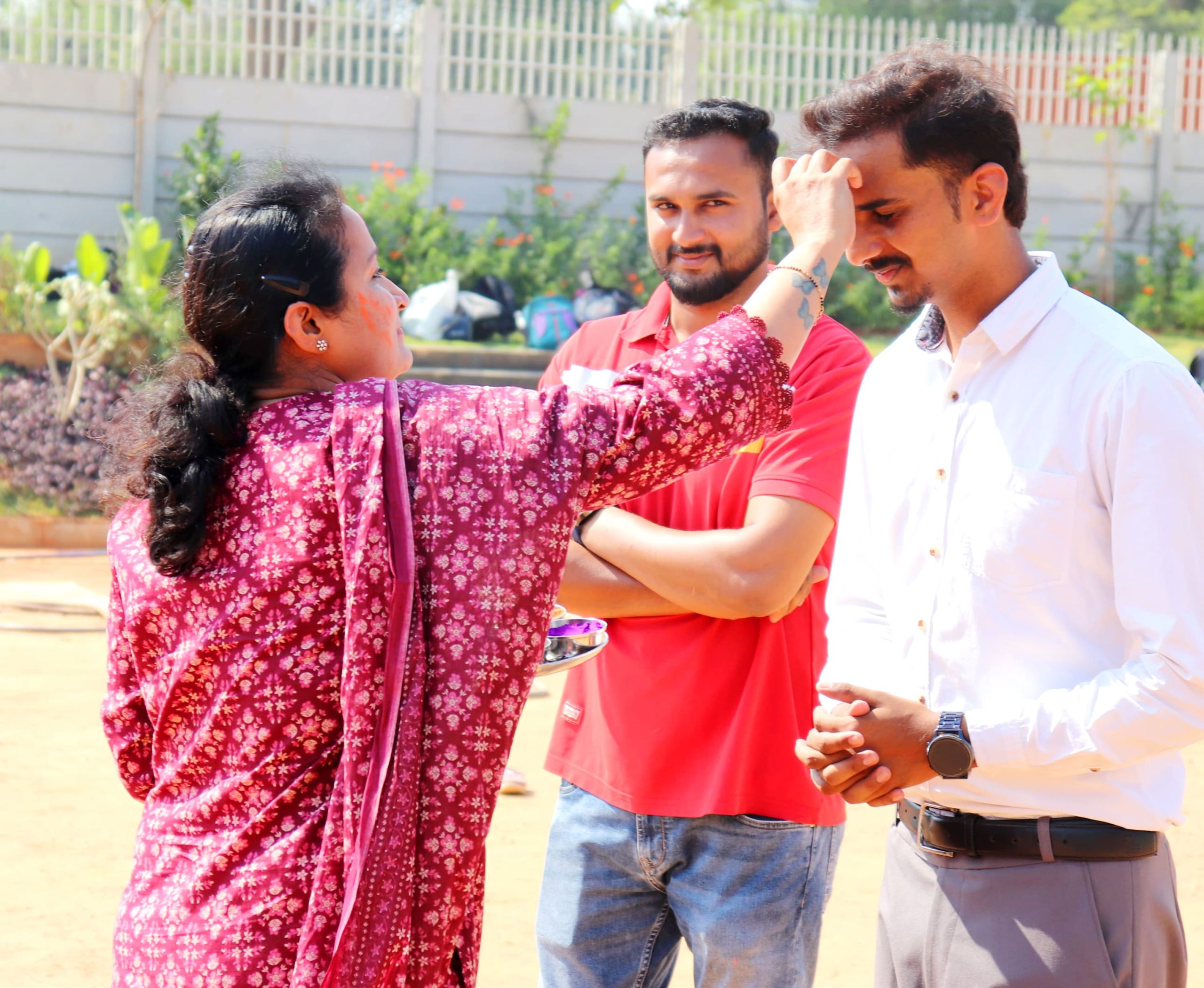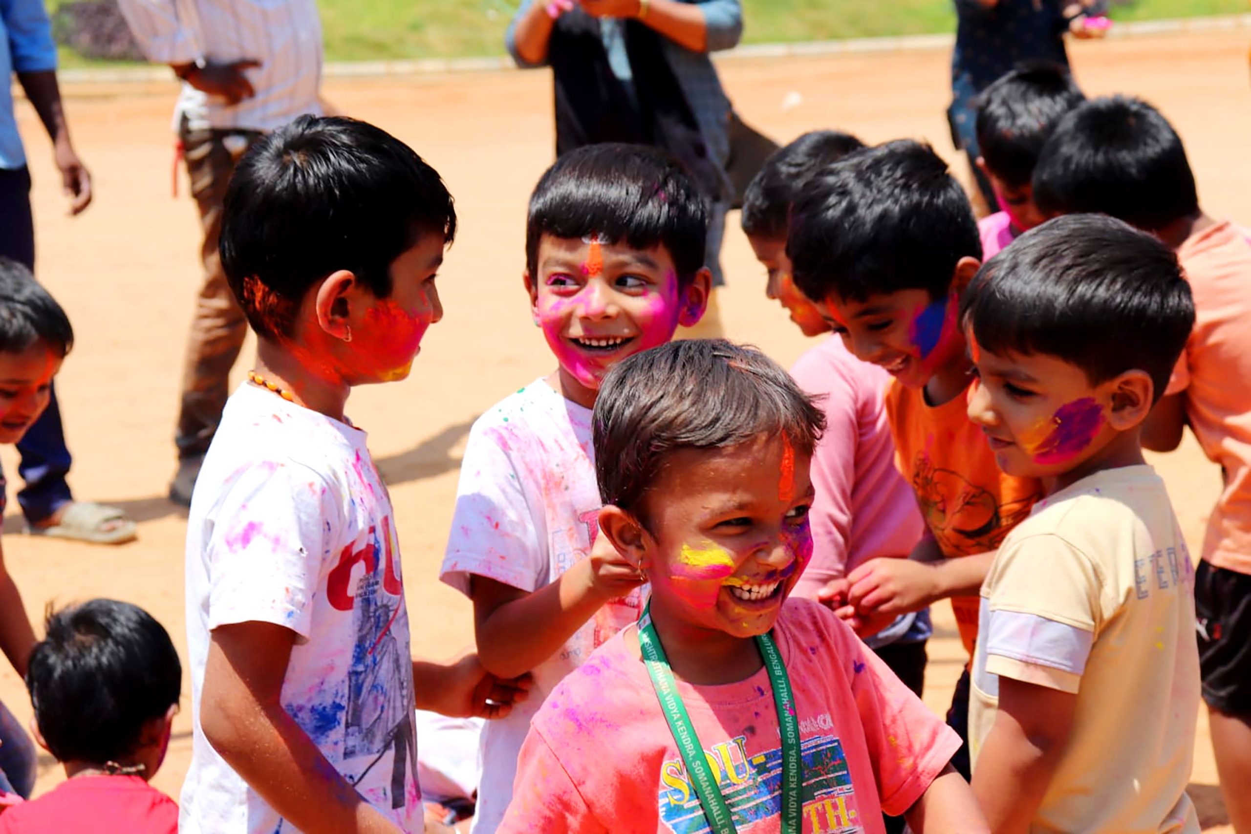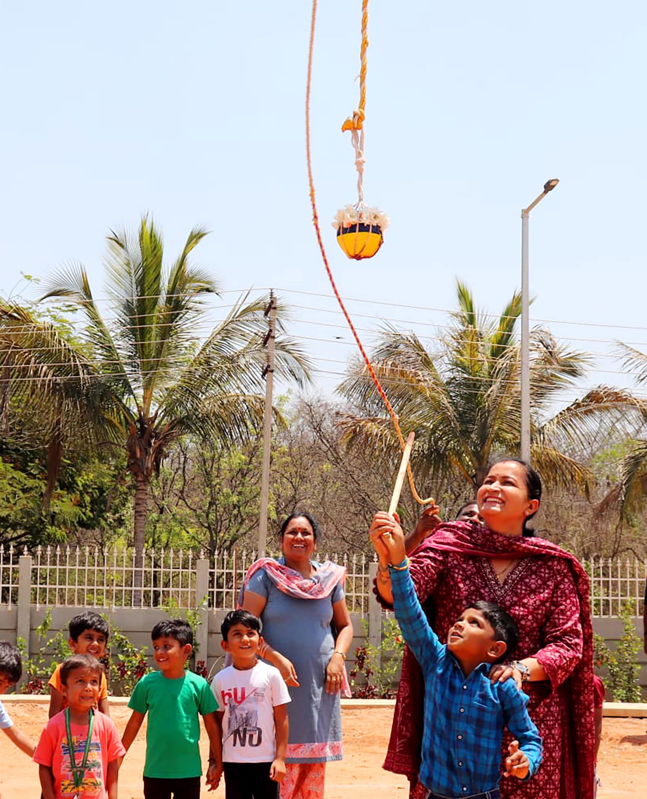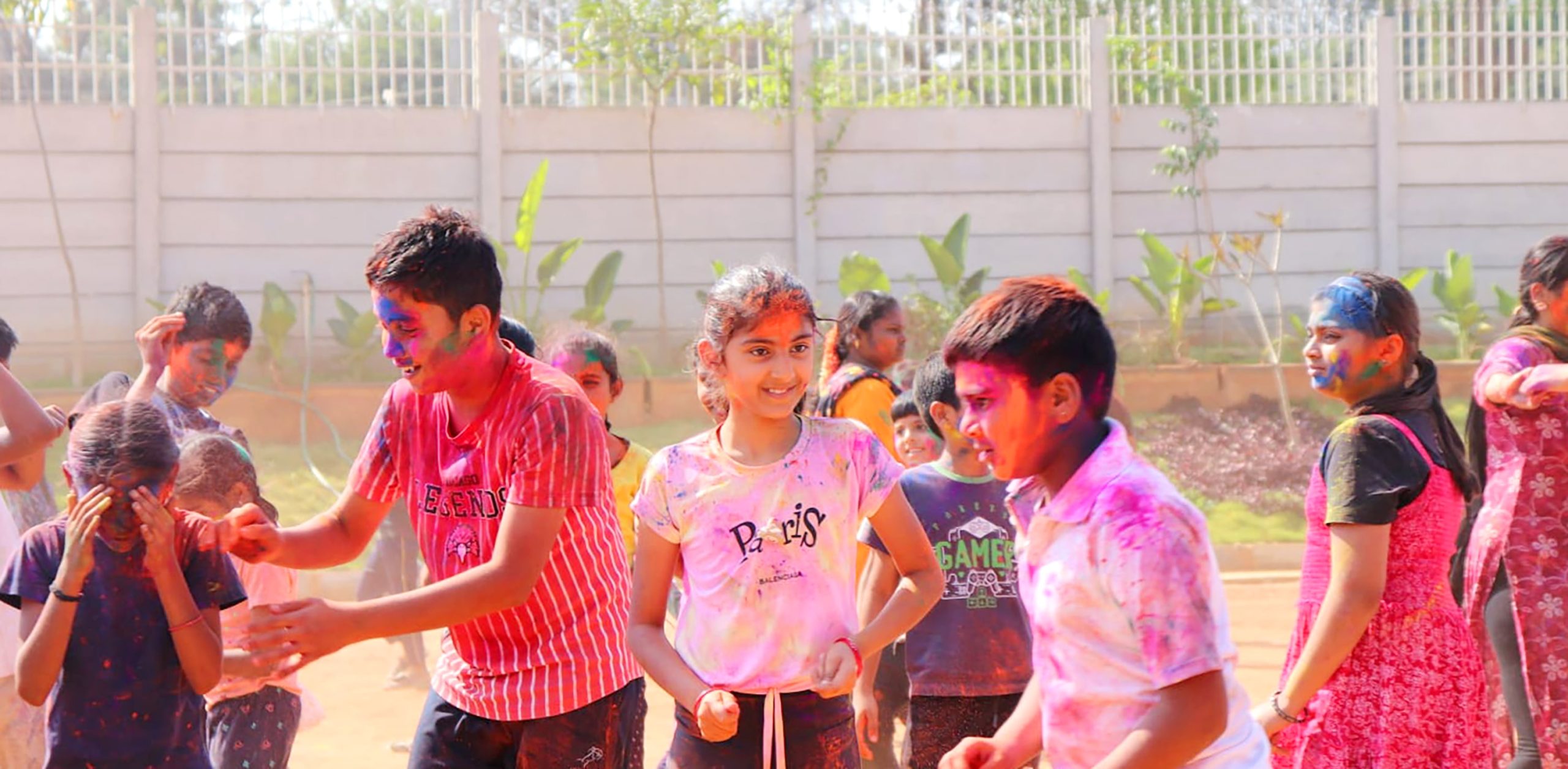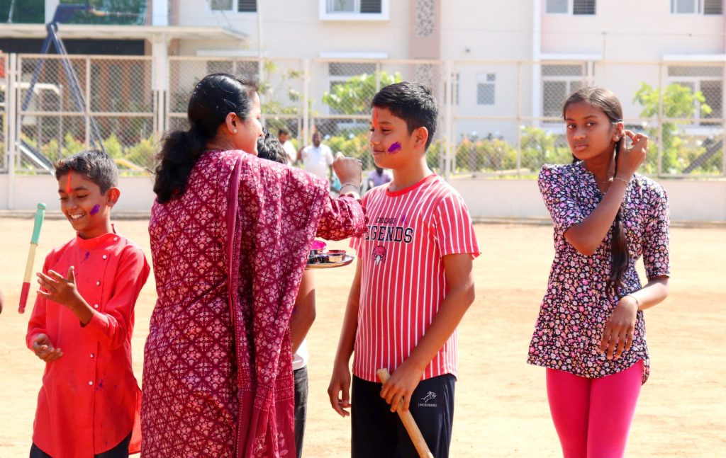 Bengaluru, Mar. 14: Holi festival was celebrated herein Rashtrotthana Vidya Kendra – Somanahalli. The program was inaugurated by Sri Yashwanth, who is in charge of the school administration, by offering puja to Manmatha. Then, the Manmatha was burnt to destroy evil spirits and encourage good deeds. Then, a student of class six gave a detailed background on the celebration of Holi to everyone. Similarly, the students of class three danced on the Holi festival. The principal, Smt. Ramya, offered puja to the pillar. The students of class five and six beat the pot. Finally, everyone applied colours to each other and sang songs and danced.