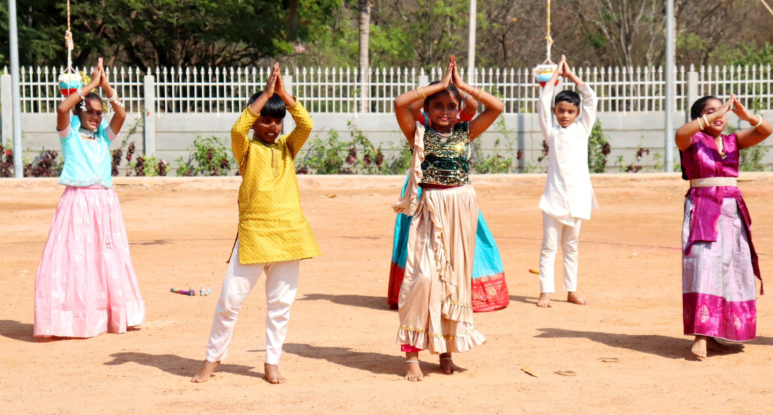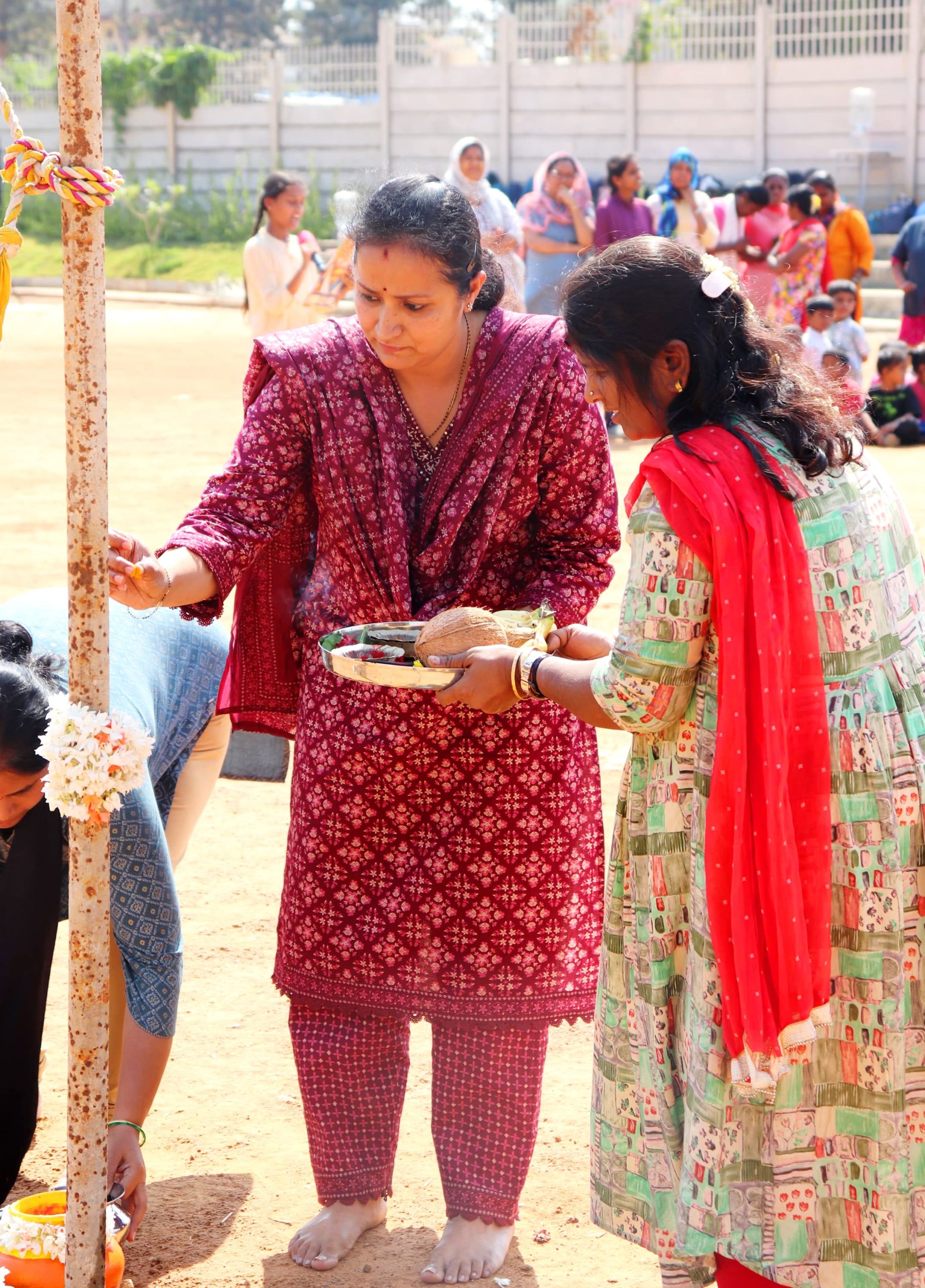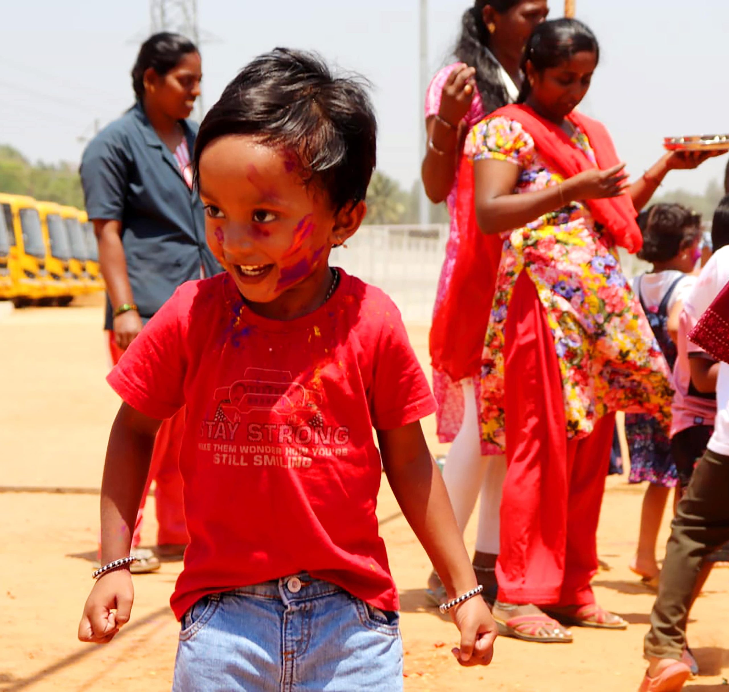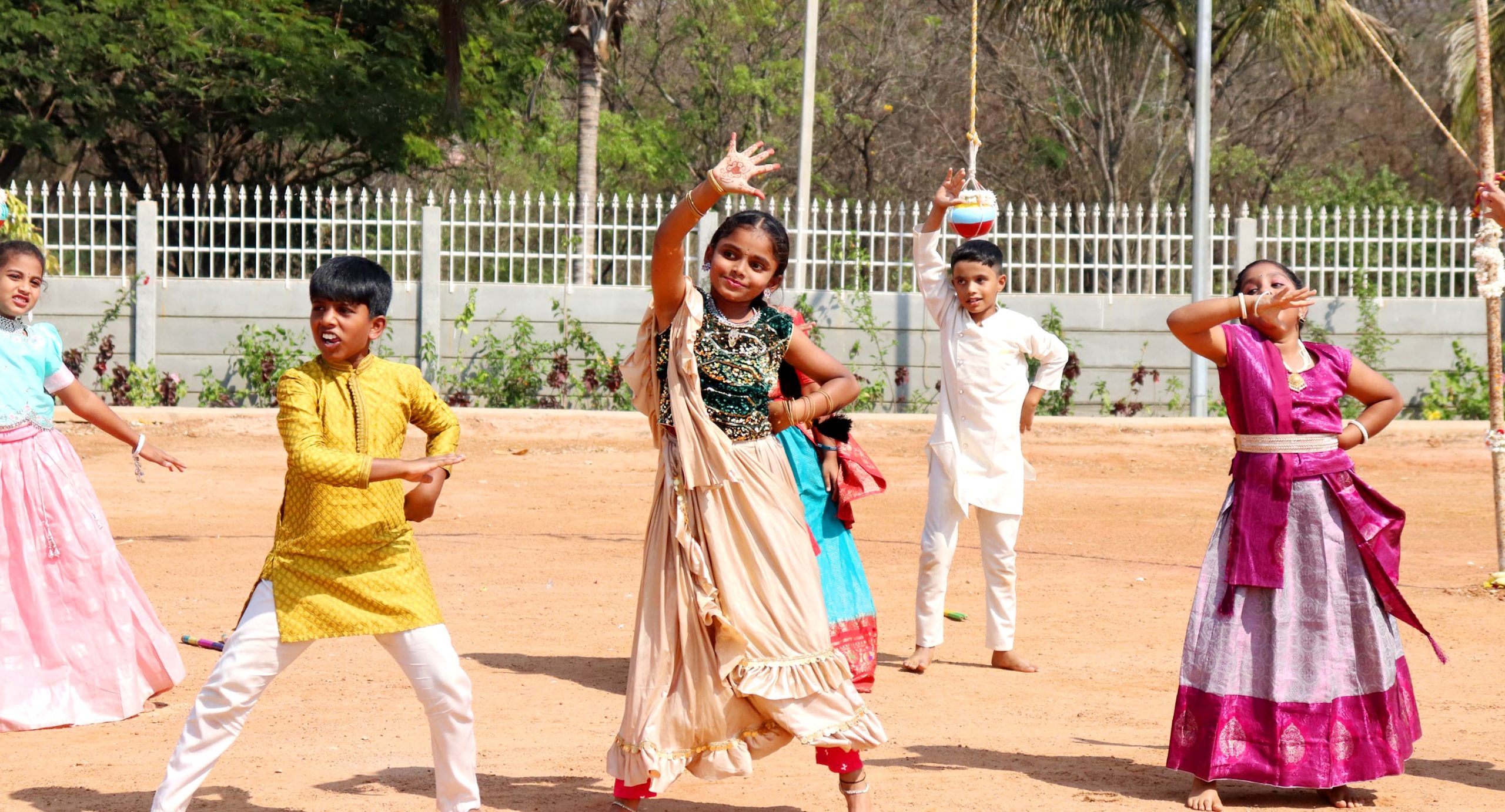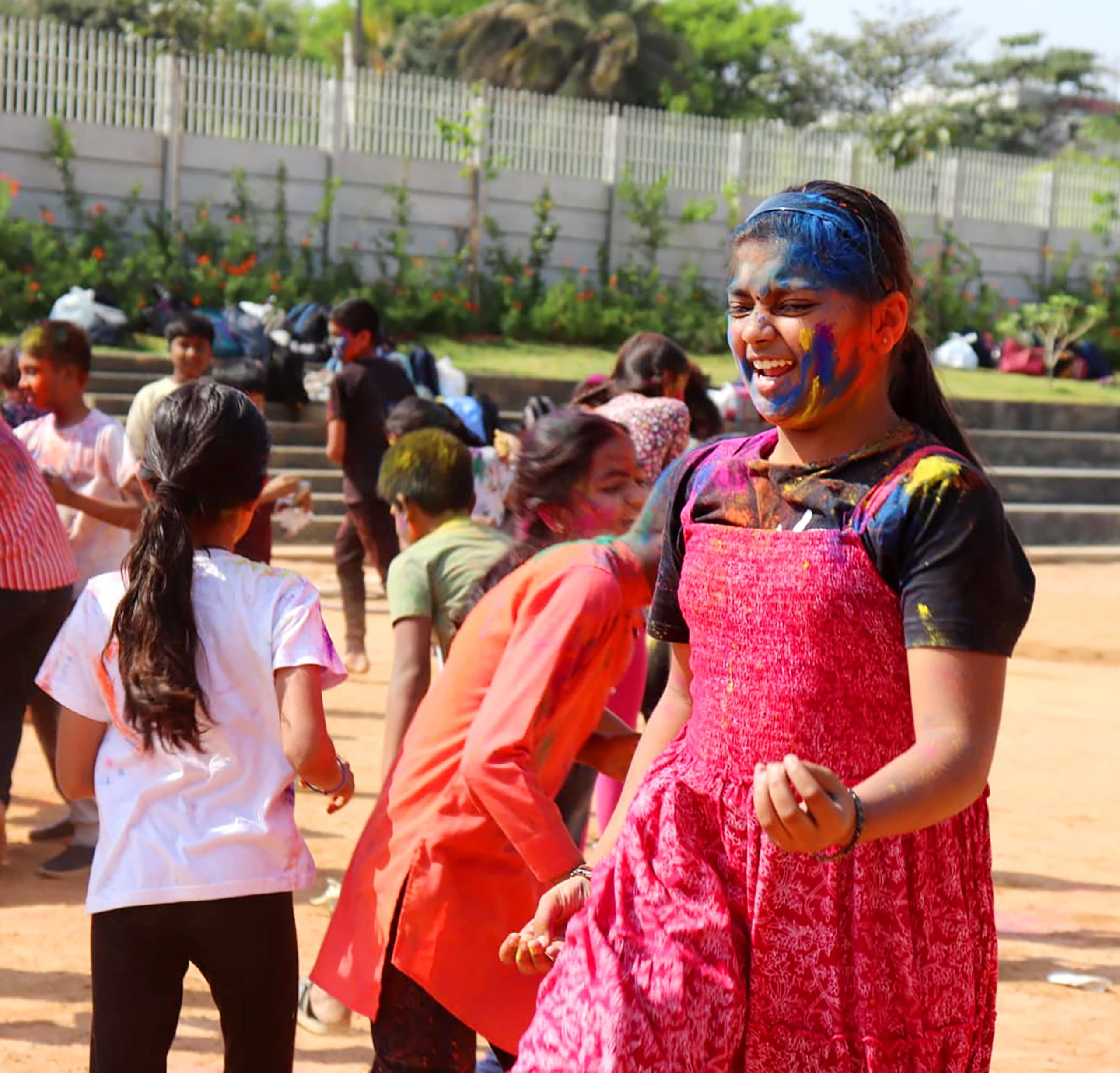 Bengaluru, Mar. 14: Holi festival was celebrated herein Rashtrotthana Vidya Kendra – Somanahalli. The program was inaugurated by Sri Yashwanth, who is in charge of the school administration, by offering puja to Manmatha. Then, the Manmatha was burnt to destroy evil spirits and encourage good deeds. Then, a student of class six gave a detailed background on the celebration of Holi to everyone. Similarly, the students of class three danced on the Holi festival. The principal, Smt. Ramya, offered puja to the pillar. The students of class five and six beat the pot. Finally, everyone applied colours to each other and sang songs and danced.