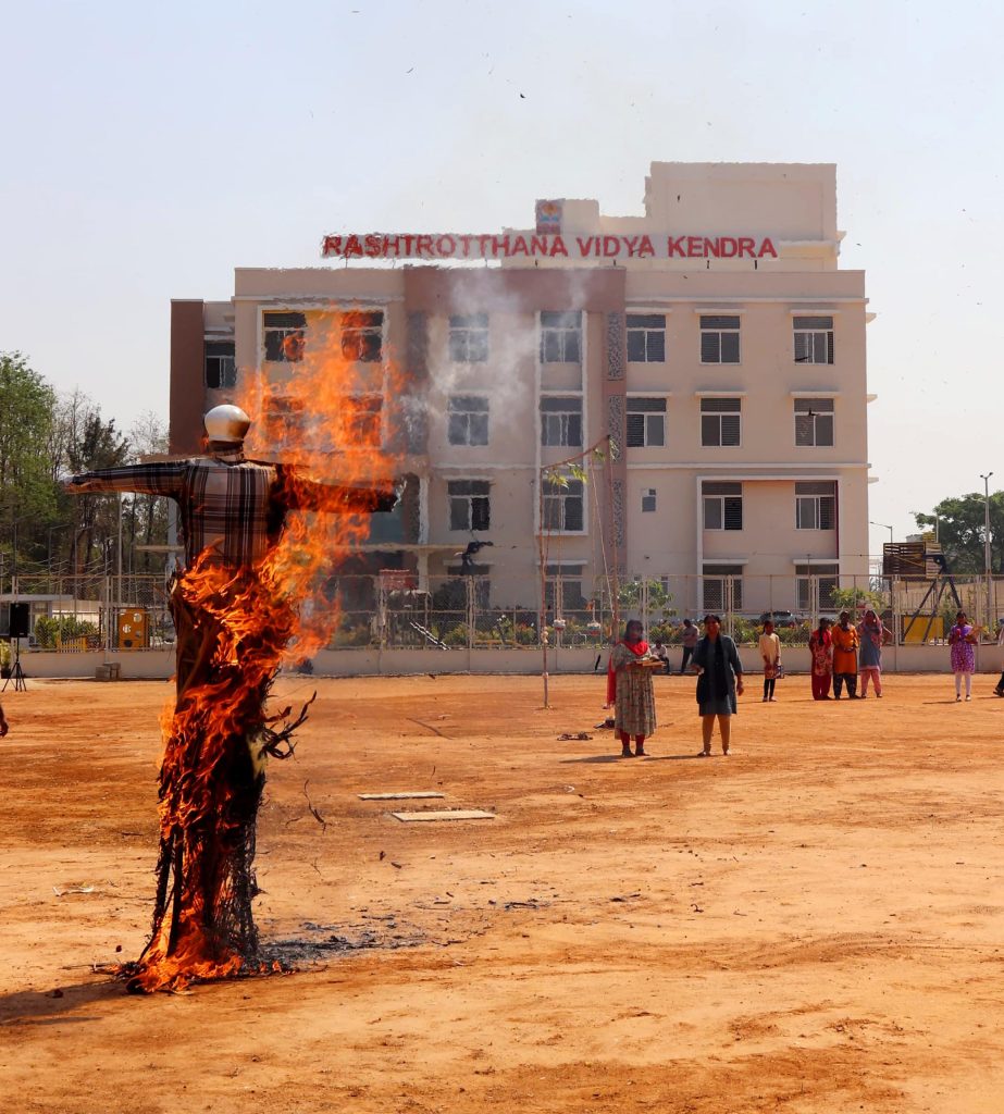 ಬೆಂಗಳೂರು, ಮಾ. 14: ರಾಷ್ಟ್ರೋತ್ಥಾನ ವಿದ್ಯಾಕೇಂದ್ರ – ಸೋಮನಹಳ್ಳಿಯಲ್ಲಿ ಹೋಳಿ ಹಬ್ಬವನ್ನು ಆಚರಿಸಲಾಯಿತು.ಕಾರ್ಯಕ್ರಮವನ್ನು ಶಾಲೆಯ ಆಡಳಿತ ಉಸ್ತುವಾರಿಯನ್ನು ನಡೆಸುವ ಶ್ರೀ ಯಶವಂತ್ ಅವರು ಮನ್ಮಥನಿಗೆ ಪೂಜೆಯನ್ನು ಸಲ್ಲಿಸುವುದರ ಮೂಲಕ ಉದ್ಘಾಟಿಸಿದರು. ನಂತರ ದುಷ್ಟ ಶಕ್ತಿಗಳನ್ನು ನಾಶ ಮಾಡಿ ಸತ್ಕರ್ಮಗಳನ್ನು ಉತ್ತೇಜಿಸುವ ಸಲುವಾಗಿ ಮನ್ಮಥನ ದಹನವನ್ನು ಮಾಡಲಾಯಿತು. ನಂತರ ಆರನೇ ತರಗತಿಯ ವಿದ್ಯಾರ್ಥಿ ವರ್ಷ ಹೋಳಿ ಹಬ್ಬದ ಆಚರಣೆಯನ್ನು ಕುರಿತು ಹಿನ್ನೆಲೆಯನ್ನು ಎಲ್ಲರಿಗೂ ಸವಿಸ್ತಾರವಾಗಿ ತಿಳಿಸಿದಳು. ಹಾಗೆಯೇ ಮೂರನೇ ತರಗತಿಯ ವಿದ್ಯಾರ್ಥಿಗಳು ಹೋಳಿ ಹಬ್ಬವನ್ನು ಕುರಿತು ನರ್ತಿಸಿದರು. ಪ್ರಧಾನಾಚಾರ್ಯರಾದ ಶ್ರೀಮತಿ ರಮ್ಯಾ ಅವರು ಕಂಬಕ್ಕೆ ಪೂಜೆಯನ್ನು ಸಲ್ಲಿಸಿದರು. ಐದನೇ ಮತ್ತು ಆರನೇ ತರಗತಿಯ ವಿದ್ಯಾರ್ಥಿಗಳು ಮಡಕೆಯನ್ನು ಹೊಡೆದರು. ಕೊನೆಯದಾಗಿ ಎಲ್ಲರೂ ಪರಸ್ಪರ ಬಣ್ಣಗಳನ್ನು ಹಚ್ಚಿಕೊಂಡು ಹಾಡುಗಳನ್ನು ಹೇಳಿಕೊಂಡು ಕುಣಿದಾಡಿದರು.