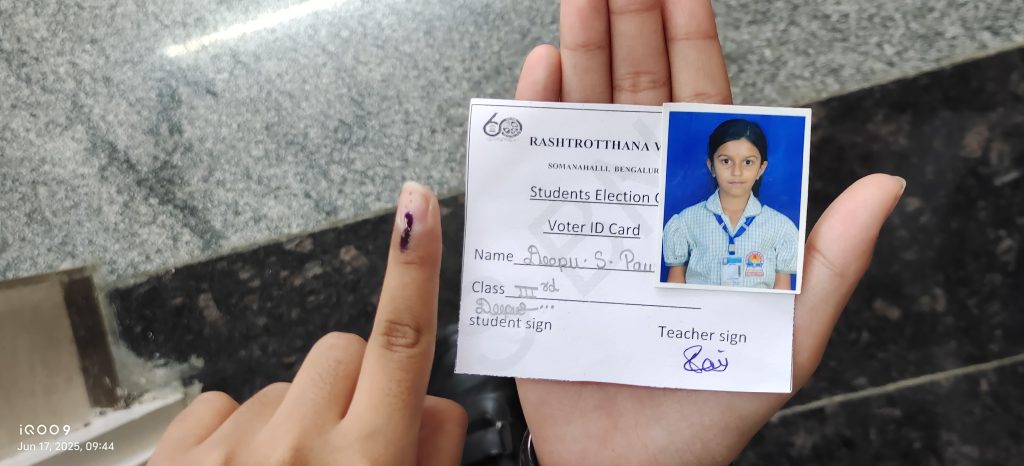 ಬೆಂಗಳೂರು, ಜೂ. 22: ರಾಷ್ಟ್ರೋತ್ಥಾನ ವಿದ್ಯಾಕೇಂದ್ರ – ಸೋಮನಹಳ್ಳಿಯಲ್ಲಿ ನಾಯಕತ್ವ ಪ್ರತಿಜ್ಞಾ ಸ್ವೀಕಾರ ಸಮಾರಂಭವನ್ನು ಆಯೋಜಿಸಲಾಗಿತ್ತು. ಮುಖ್ಯ ಅತಿಥಿಗಳಾಗಿ ಶ್ರೀ ವೆಂಕಟೇಶ್‌, ಪೊಲೀಸ್‌ ಇನ್ಸ್ಪೆಕ್ಟರ್‌, ಕಗ್ಗಲಿಪುರ ಇವರು ಆಗಮಿಸಿದ್ದರು. ವಿದ್ಯಾರ್ಥಿ ಪರಿಷತ್ತಿನ ಚುನಾವಣಾ ಘೋಷಣೆಯನ್ನು ಮೇ 29 ರಂದು ನಡೆಸಲಾಯಿತು. ಮೇ 30 ರಂದು ನಾಮಪತ್ರ ಸ್ವೀಕರಿಸಲಾಯಿತು ಮತ್ತು ಜೂನ್ 4 ರಂದು ಅರ್ಹ ಅಭ್ಯರ್ಥಿಗಳ ಮೊದಲ ಪಟ್ಟಿಯನ್ನು ಬಿಡುಗಡೆ ಮಾಡಲಾಯಿತು. ಜೂನ್ 6 ರಂದು ಎರಡನೇ ಮತ್ತು ಅಂತಿಮ ಪಟ್ಟಿಯನ್ನು ಘೋಷಿಸಲಾಯಿತು. ಜೂನ್ 9 ರಿಂದ 13 ರವರೆಗೆ ಅಭಿಯಾನವನ್ನು ನಡೆಸಲಾಯಿತು. ಜೂನ್ 17 ರಂದು ಪಂಚಮುಖಿ ಶಿಕ್ಷಣದ ಭಾಗವಾಗಿ ಸುರಕ್ಷಿತ ಡಿಜಿಟಲ್ ವೇದಿಕೆಯನ್ನು ಬಳಸಿಕೊಂಡು ಮತದಾನ ಪ್ರಕ್ರಿಯೆಯನ್ನು ನಡೆಸಲಾಯಿತು. ಜೂನ್‌ 18ರಂದು ಫಲಿತಾಂಶವನ್ನು ಪ್ರಕಟಿಸಲಾಯಿತು. ಜೂನ್‌ 24ರಂದು ಹೊಸದಾಗಿ ಆಯ್ಕೆಗೊಂಡ ವಿದ್ಯಾರ್ಥಿಗಳು ತಮ್ಮ ಸ್ಥಾನವನ್ನು ಪರಿಗ್ರಹಣ ಮಾಡಿದರು. ಶಾಲಾ ಮ್ಯಾಗಝಿನ್‌ ʼಅಂಕುರʼವನ್ನು ಬಿಡುಗಡೆ ಮಾಡಲಾಯಿತು. ನೃತ್ಯವನ್ನು ಪ್ರದರ್ಶಿಸಲಾಯಿತು. ಮುಖ್ಯ ಅತಿಥಿ ಶ್ರೀ ವೆಂಕಟೇಶ್ ಅವರು ನಾಯಕತ್ವ ಗುಣಗಳನ್ನು ಬೆಳೆಸುವುದು ಮತ್ತು ಶಾಲೆ ಮತ್ತು ಸಮಾಜಕ್ಕೆ ಸಕಾರಾತ್ಮಕ ಕೊಡುಗೆ ನೀಡುವ ಬಗ್ಗೆ ಬೆಳಕು ಚೆಲ್ಲುವ ಭಾಷಣ ಮಾಡಿದರು. ಹೊಸದಾಗಿ ಆಯ್ಕೆಯಾದ ವಿದ್ಯಾರ್ಥಿ ನಾಯಕರು ಸಮರ್ಪಣೆ ಮತ್ತು ಸಮಗ್ರತೆಯಿಂದ ಸೇವೆ ಸಲ್ಲಿಸುವುದಾಗಿ ಪ್ರಮಾಣವಚನ ಸ್ವೀಕರಿಸಿದರು.