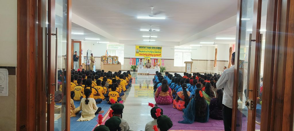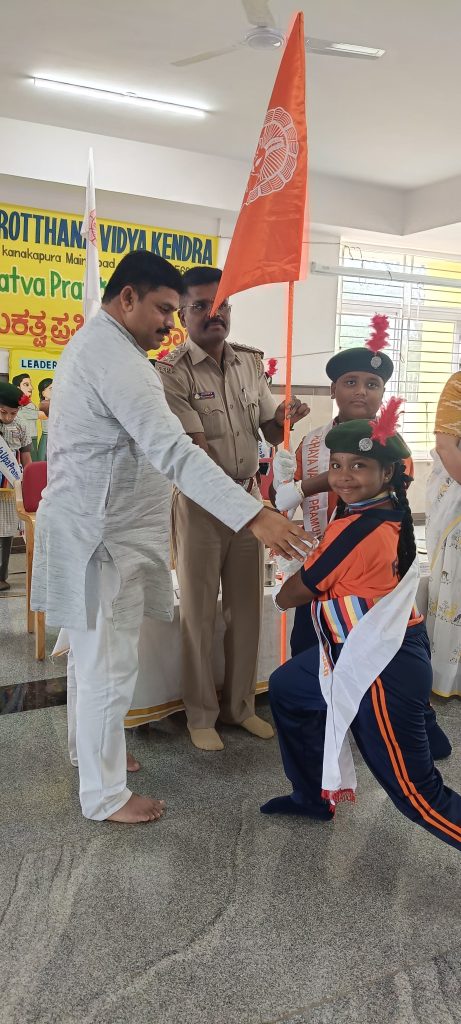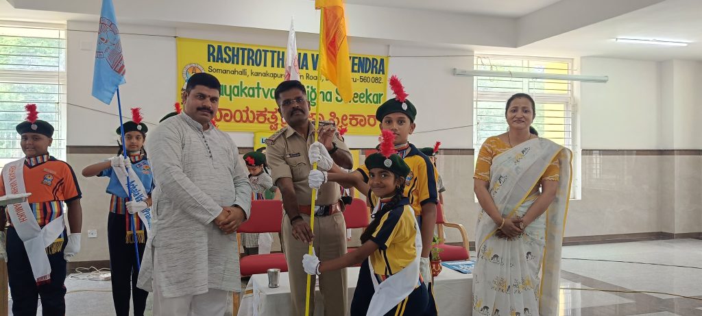 Bengaluru, June 22: Nayakatva Pratijna Swikara Ceremony was organized at Rashtrotthana Vidya Kendra – Somanahalli. Sri Venkatesh, Police Inspector, Kaggalipur graced the program. The announcement of the Student Council elections was made on May 29. Nominations were accepted on May 30 and the first list of eligible candidates was released on June 4. The second and final list was announced on June 6. The campaign was conducted from June 9 to 13. The voting process was conducted on June 17 as part of Panchamukhi Shikshana using a secure digital platform. The results were declared on June 18. On June 24, the newly selected students took their seats. The school magazine ‘Ankura’ was released. A dance performance was performed. The chief guest Sri Venkatesh delivered an enlightening speech on inculcating leadership qualities and making a positive contribution to the school and society. The newly elected student leaders took an oath to serve with dedication and integrity.