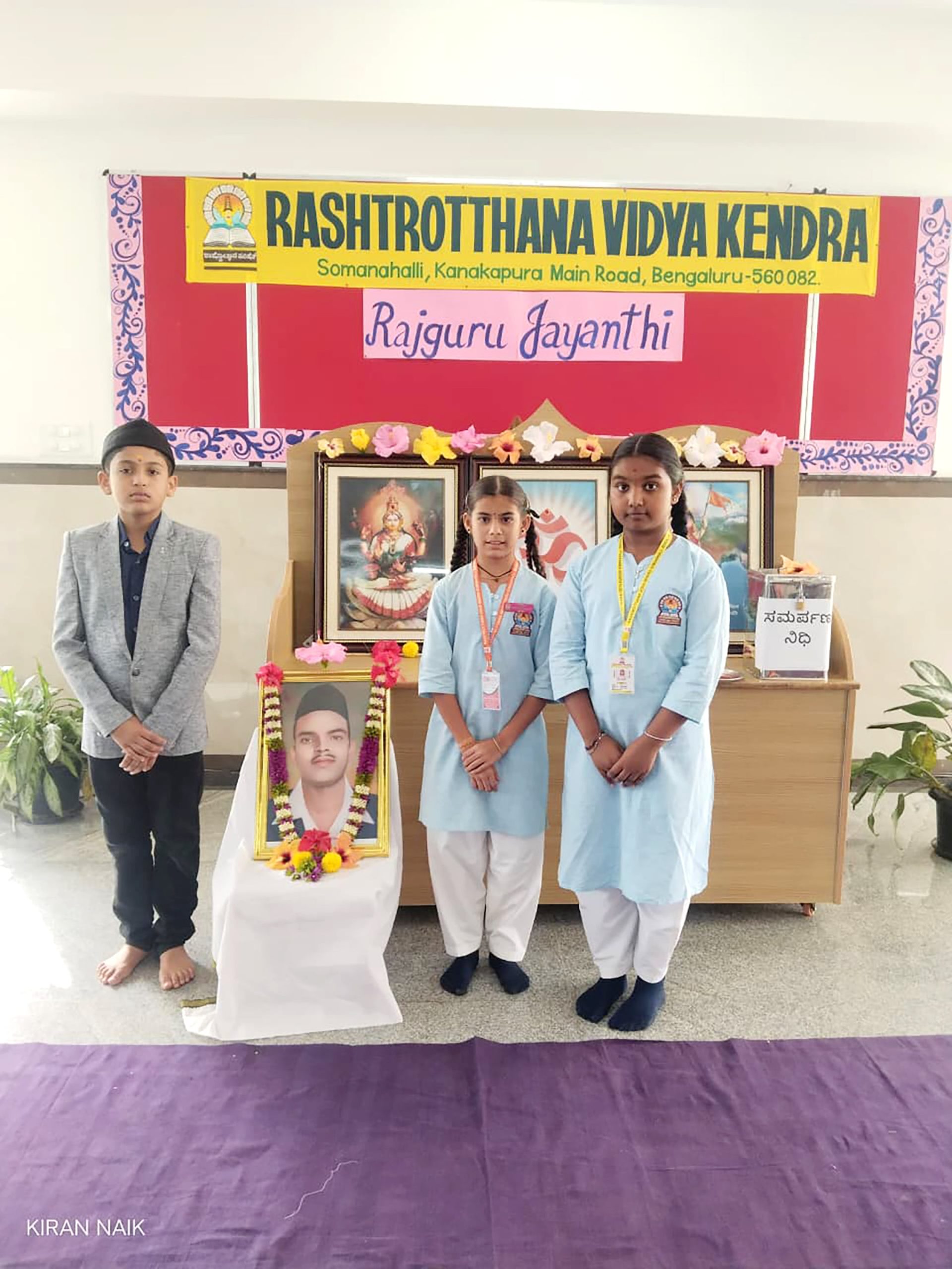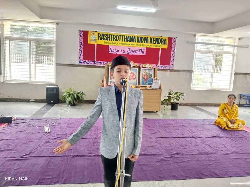 Bengaluru, Aug. 23: Shivaram Rajguru Jayanti was celebrated herein Rashtrotthana Vidya Kendra – Somanahalli. The importance of the celebration was highlighted by highlighting his role in India’s freedom struggle along with Bhagat Singh and Sukhdev. The students performed Chadmavesha by reciting the words of Rajguru. The program concluded with a video showing the life story of our Indian hero.