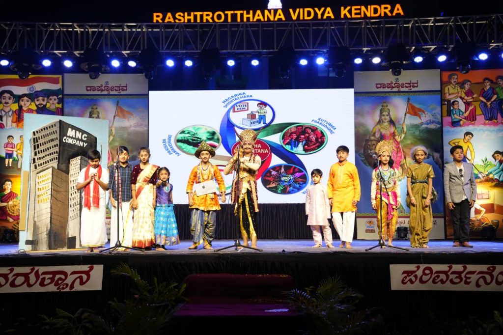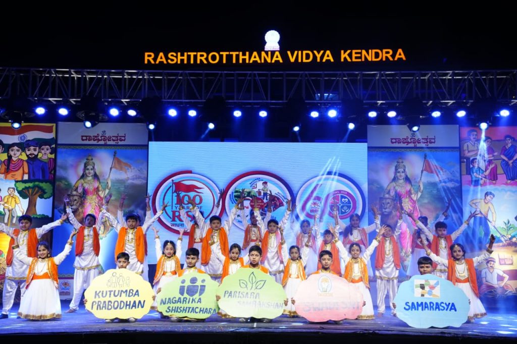 Bengaluru, Dec. 19: Rashtrotthana Vidya Kendra- Somanahalli celebrated the National Festival for the academic year 2025-26 under the theme “Resurrection – On the Mountain of Transformation”. Dr. H.S. Prema, Clinical Dietician and Nutritionist, graced the programme. The Chief Guest encouraged parents to uphold Indian culture and stressed the need to bring about a positive change in mindset towards a nutritious food culture. Sri Dinesh Hegde, General Secretary, Rashtrotthana Parishat, exhorted everyone to actively participate in RP@60 and RSS@100 – Panchaparivartan and also highlighted various initiatives of Rashtroththan Parishad. The theme of Resurrection was effectively conveyed through a series of well-planned cultural performances presented by the students. Various programs like dances, skits, songs and thematic presentations highlighted the revival of values, culture, environmental awareness and social responsibility.