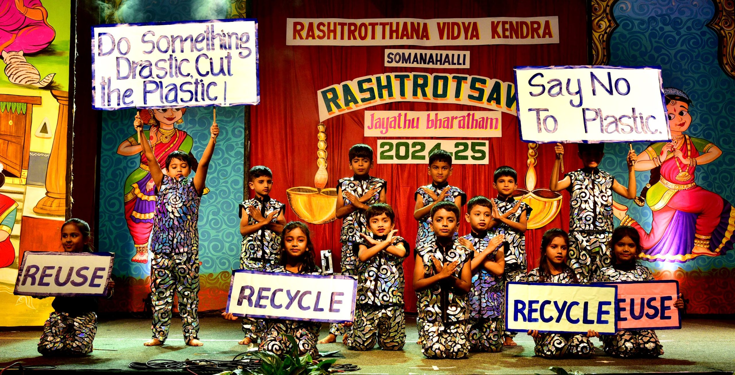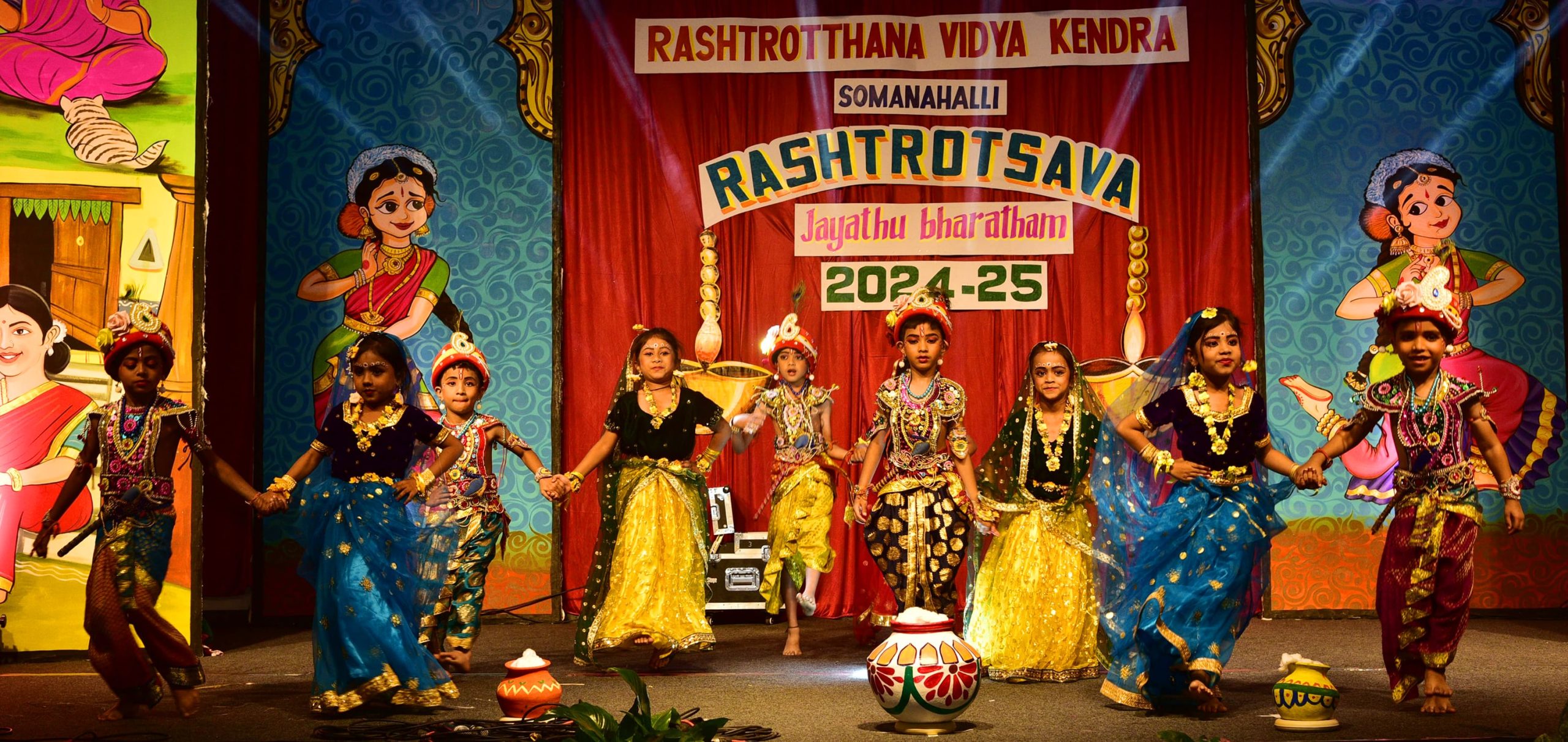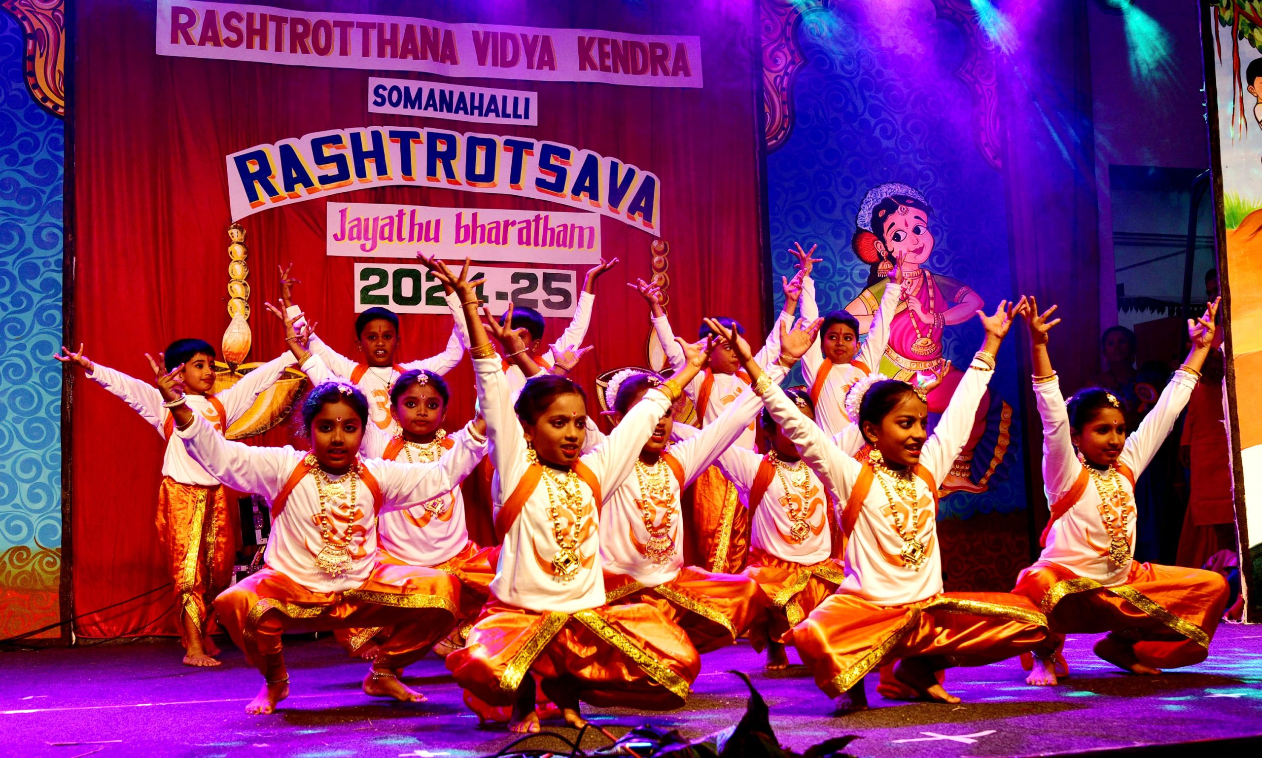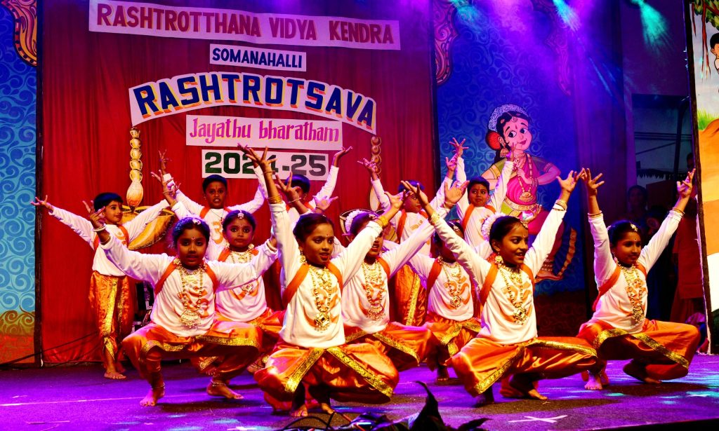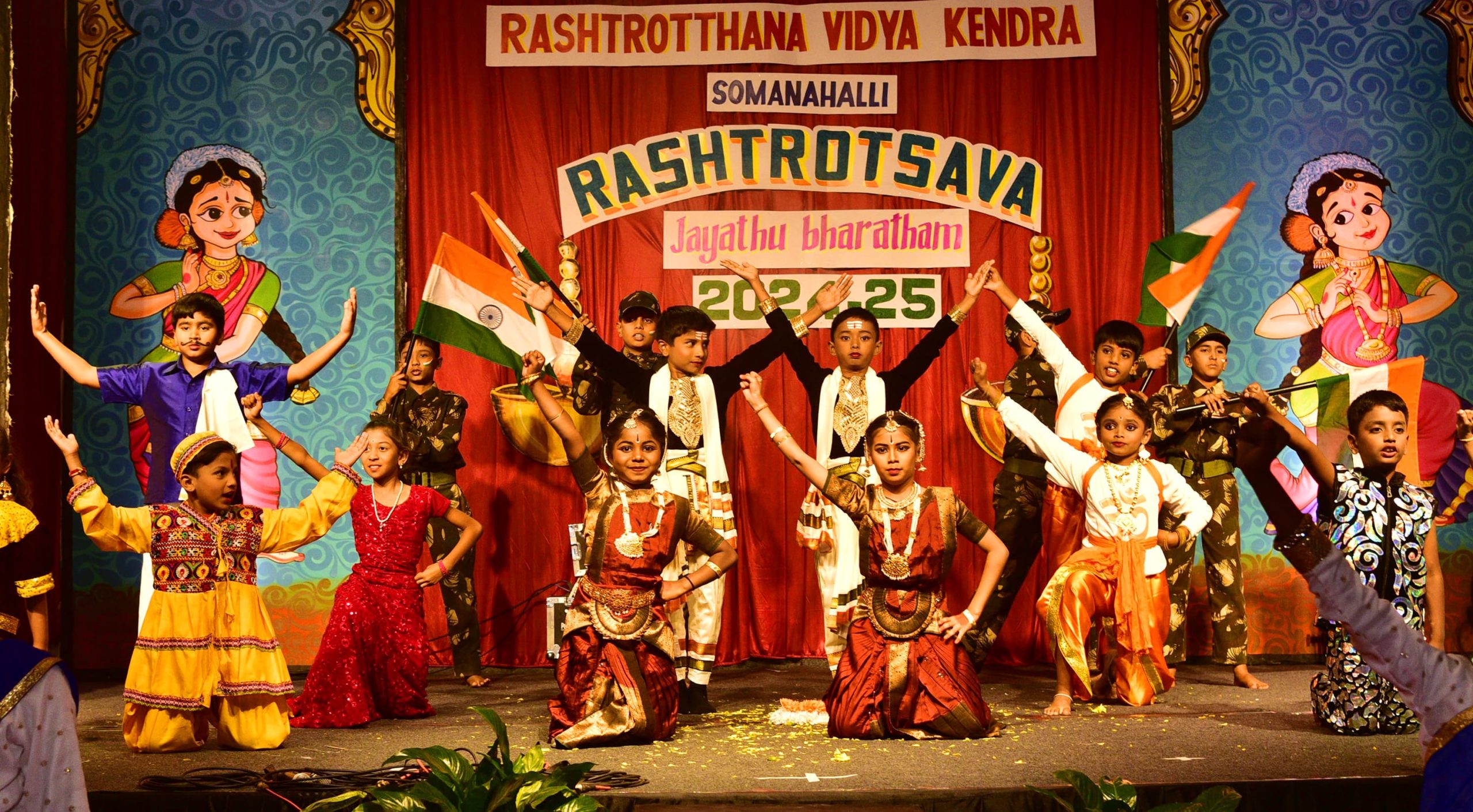 ಬೆಂಗಳೂರು, ಫೆ. 8: ರಾಷ್ಟ್ರೋತ್ಥಾನ ವಿದ್ಯಾಕೇಂದ್ರ – ಸೋಮನಹಳ್ಳಿಯಲ್ಲಿ ‘ಜಯತು ಭಾರತಂ – ಮುಗ್ಧತೆಯಿಂದ ದೇಶಾಭಿಮಾನದ ಕಡೆಗೆ’ ಥೀಮ್ ಅಡಿಯಲ್ಲಿ ರಾಷ್ಟ್ರೋತ್ಸವವನ್ನು ಆಚರಿಸಲಾಯಿತು. ಮುಖ್ಯ ಅತಿಥಿಗಳಾಗಿ ಅದಮ್ಯ ಚೇತನ ಫೌಂಡೇಶನ್‌ನ ಅಧ್ಯಕ್ಷರು ಮತ್ತು ಸಹ-ಸಂಸ್ಥಾಪಕರಾದ ಶ್ರೀಮತಿ ತೇಜಸ್ವಿನಿ ಅನಂತಕುಮಾರ್ ಅವರು ಆಗಮಿಸಿದ್ದರು.  ಅತಿಥಿಗಳನ್ನು ಪೂರ್ಣಕುಂಭದೊಂದಿಗೆ ಸ್ವಾಗತಿಸಲಾಯಿತು. ಮುಖ್ಯ ಅತಿಥಿಗಳಾದ ಶ್ರೀಮತಿ ತೇಜಸ್ವಿನಿ ಅನಂತ್ ಕುಮಾರ್ ಅವರು ಪ್ಲಾಸ್ಟಿಕ್ ಬಳಕೆಯನ್ನು ಕಡಿಮೆ ಮಾಡುವ ನಿಟ್ಟಿನಲ್ಲಿ ಅದಮ್ಯ ಚೇತನ ಸಂಸ್ಥೆಯ ಕಾರ್ಯದ ಬಗ್ಗೆ ಮಾತನಾಡಿದರು. ಜೈವಿಕ ವಿಘಟನೀಯ ವಸ್ತುಗಳಿಂದ ಪ್ಲಾಸ್ಟಿಕ್ ಬಳಕೆಯನ್ನು ಕಡಿಮೆ ಮಾಡುವುದು ಮತ್ತು ಪರಿಸರ ಹಾನಿಯನ್ನು ಕಡಿಮೆ ಮಾಡಲು ಮರುಬಳಕೆ ಮಾಡುವುದರ ಬಗ್ಗೆ ವಿವರವಾಗಿ ತಿಳಿಸಿದರು.ಶ್ರೀ ಮಹೇಶ್ವರಯ್ಯ ಎಸ್. ಬಿ. ಅವರು ರಾಷ್ಟ್ರೋತ್ಥಾನ ಪರಿಷತ್ತಿನ ಪ್ರಕಲ್ಪವನ್ನು ಕಾರ್ಯದ ಬಗ್ಗೆ ತಿಳಿಸಿದರು. RP@60 ಕಾರ್ಯಕ್ರಮದ ಬಗ್ಗೆ ಹಾಗೂ ಕರ್ನಾಟಕದಾದ್ಯಂತ ವಿಸ್ತರಿಸುತ್ತಿರುವ ಆರ್‌ವಿಕೆ ಶಾಲೆಗಳನ್ನು ಬಗ್ಗೆ ತಿಳಿಸಿದರು.  ಗೋಕುಲಂನಿಂದ 6 ನೇ ತರಗತಿಯವರೆಗಿನ ವಿದ್ಯಾರ್ಥಿಗಳು ನೃತ್ಯ, ಸಂಗೀತ ಮತ್ತು ನಾಟಕವನ್ನು ಪ್ರದರ್ಶಿಸಿದರು. ಭಾರತದ ಶ್ರೀಮಂತ ಸಂಸ್ಕೃತಿ ಮತ್ತು ಪರಿವಾರ, ಪ್ರಕೃತಿಯನ್ನು ಉಳಿಸಿ, ಸಂಸ್ಕಾರ ಸದಾಚಾರ, ಸೇವಾ ಭಾವ ಮತ್ತು ದೇಶರಕ್ಷಕದಂತಹ ನಮ್ಮ ಪ್ರಕೃತಿಯನ್ನು ಉಳಿಸುವ ಪ್ರಾಮುಖ್ಯತೆಯನ್ನು ಚಿತ್ರಿಸುವ ವಿಷಯದ ಸುತ್ತ ಕಾರ್ಯಕ್ರಮಗಳನ್ನು ರೂಪಿಸಲಾಗಿತ್ತು.