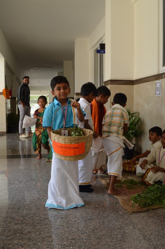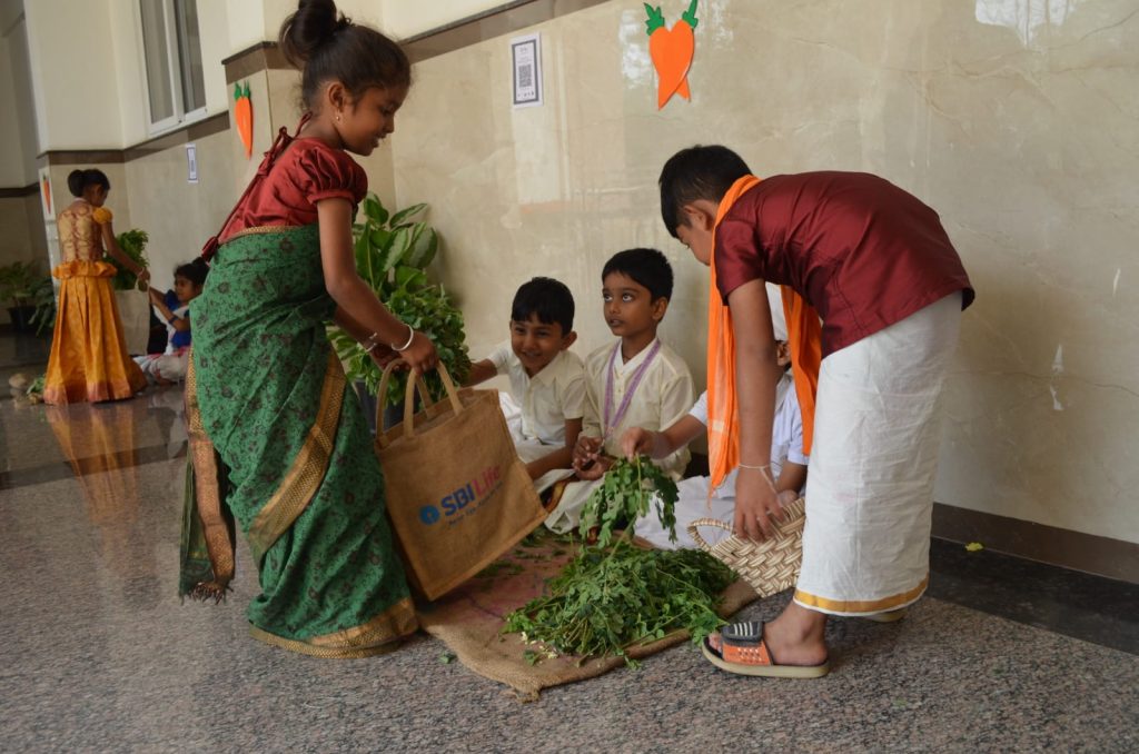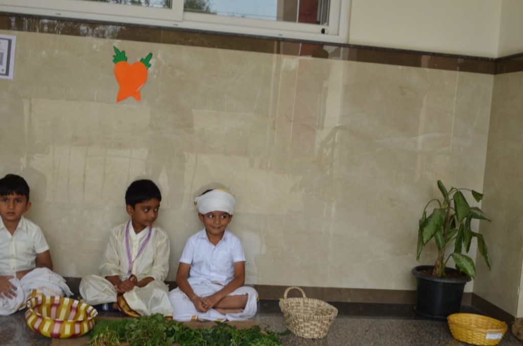 Bengaluru, Nov. 25: The Gokulam section of Rashtrotthana Vidya Kendra – Somanahalli celebrated Vegetable Day.The children brought vegetables from home and shared one sentence about each. Teachers organized a vibrant vegetable exhibition and conducted engaging activities such as display and tell, colouring, vegetable identification, vegetable salad preparation, and a skit highlighting the benefits of eating vegetables. The UKG students enacted the roles of vegetable vendors, farmers, and cart pullers, adding a lively touch to the celebration.
