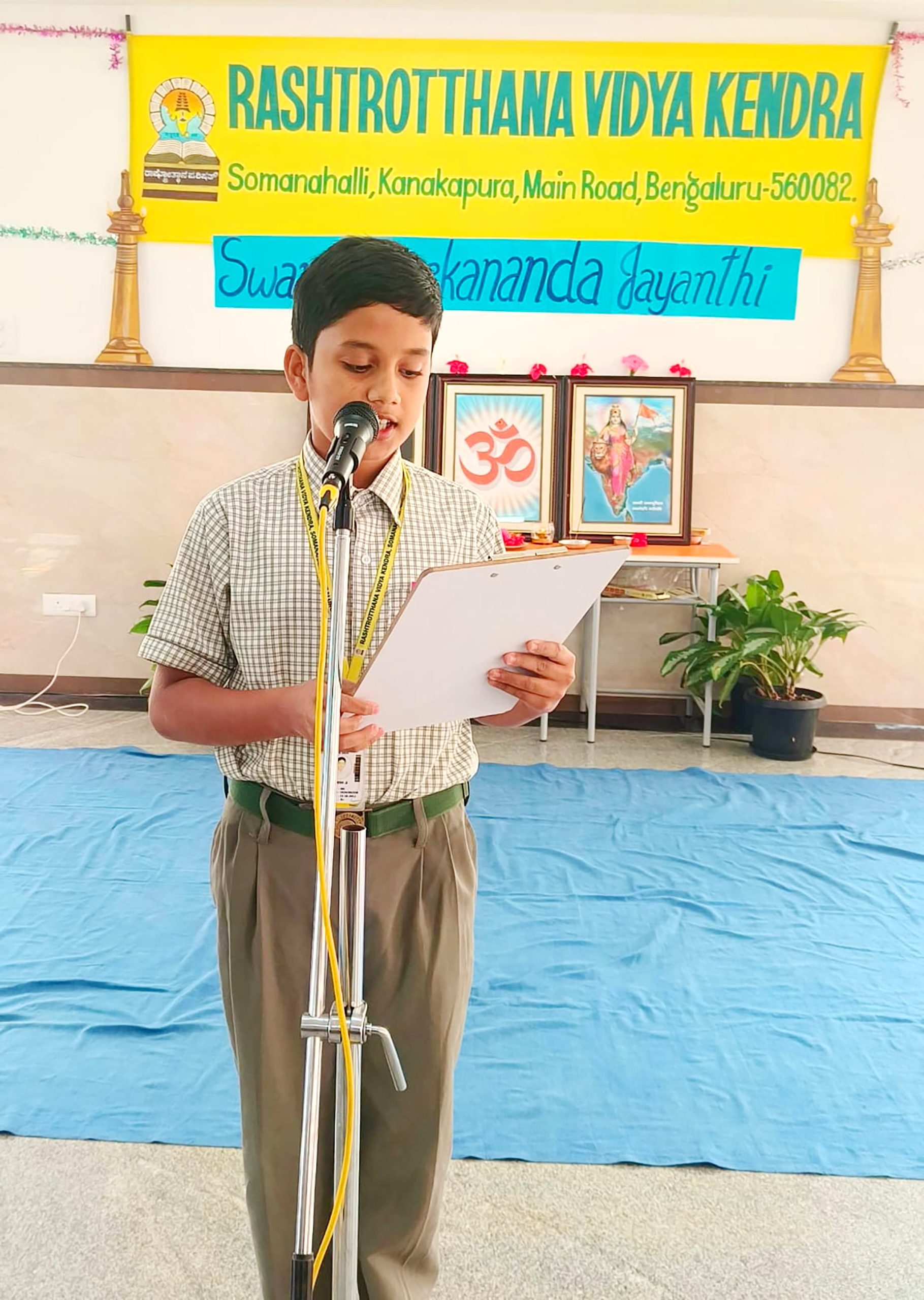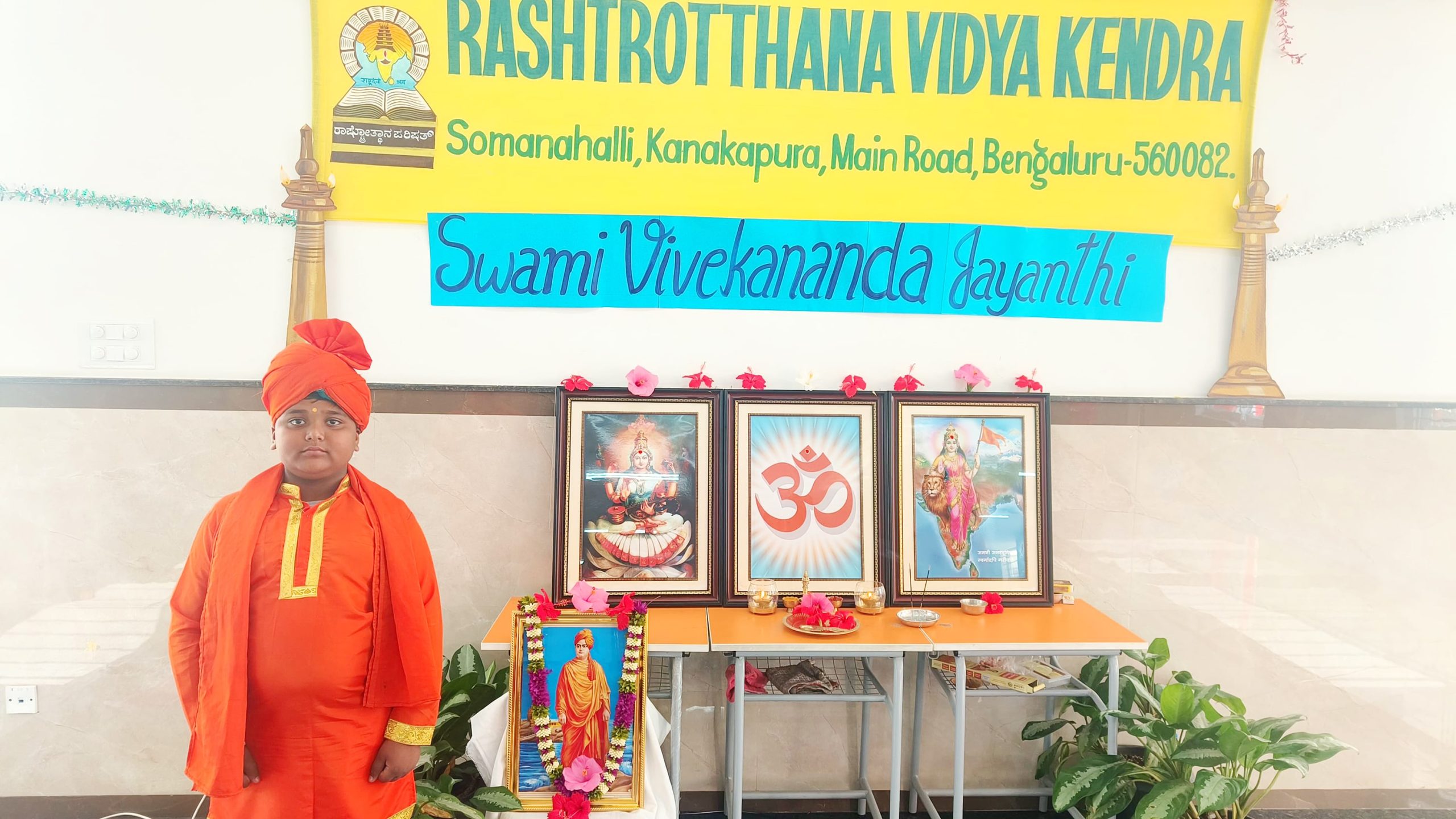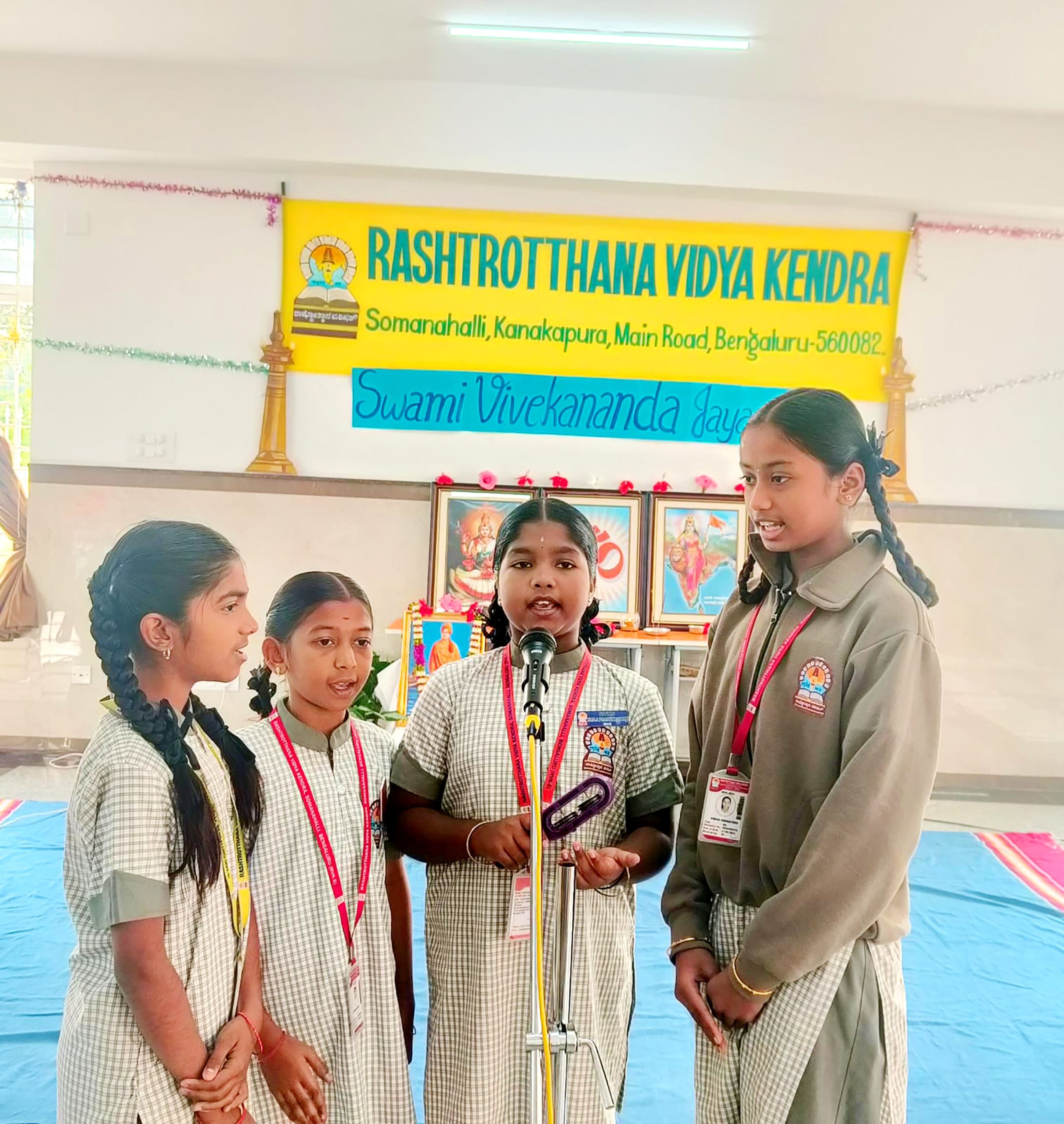 Bengaluru, Jan. 15: Swami Vivekananda Jayanti was celebrated herein Rashtrotthana Vidya Kendra – Somanahalli. Students dressed in Swami Vivekananda’s disguise and recited Vivekananda’s statements; sang a song about Vivekananda and narrated his biography. Learn more by viewing PPT slides.