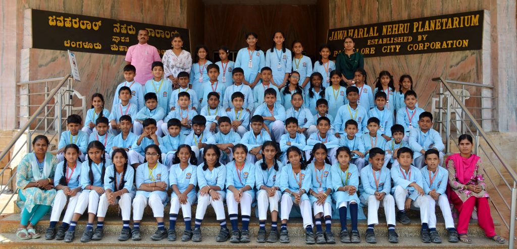Bengaluru, Feb. 18: Students of classes 4 and 5 of Rashtrotthana Vidya Kendra – Somanahalli visited the Jawaharlal Nehru Planetarium in Bengaluru as part of an educational field trip.