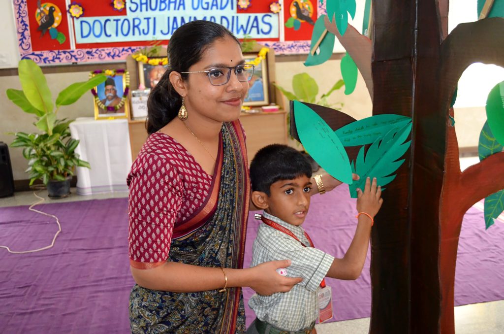 Bengaluru, Mar. 18: Yugadi and Dr Keshav Baliram Hedgewar’s jayanti were celebrated herein Rashtrotthana Vidya Kendra – Somanahalli. Yugadi was started with a puja and blessings were sought for the new year. Yugadi Pachadi and its six flavours reflecting the six emotions of life were explained. A simple experiment was conducted on Yugadi Pachadi. Students participated in ‘Resolution Tree’ activities and shared their thoughts on New Year’s goals and self-improvement. Dr Hedgewar’s birthday was celebrated as a part of which students shared thoughts on his life achievements.